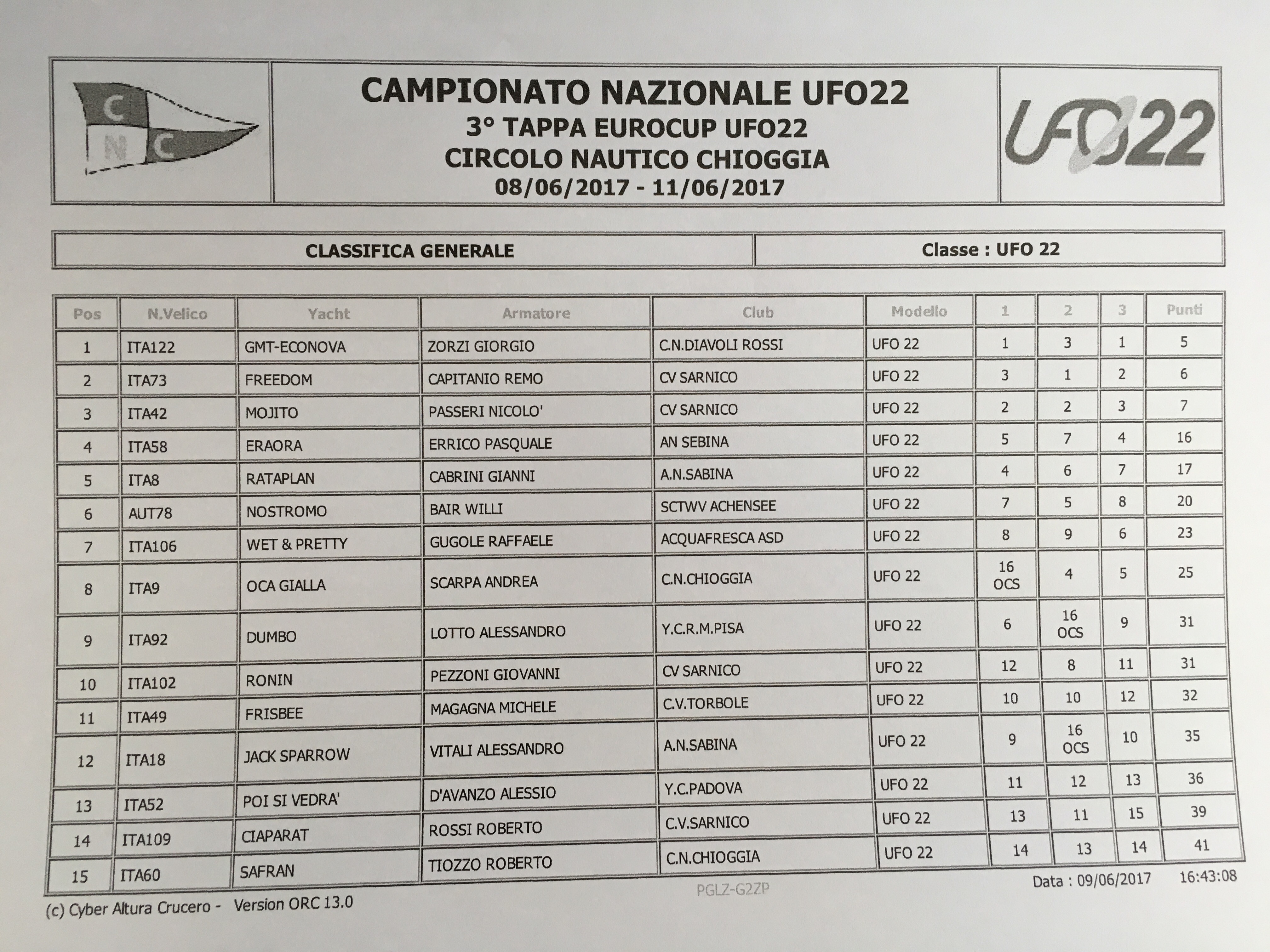 Ha preso il via questa mattina a Chioggia il Campionato Nazionale Ufo 22, la manifestazione organizzata dal Circolo Nautico Chioggia con la collaborazione logistica di Darsena le Saline, sede della manifestazione.