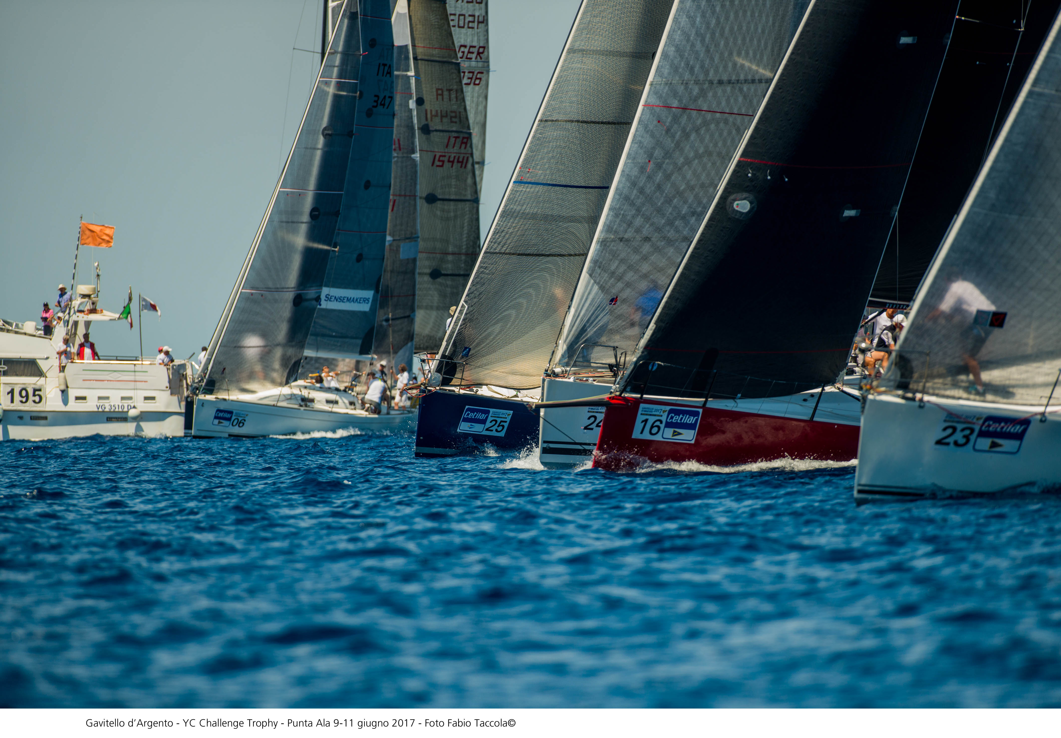 Condizioni meteo favorevoli a Punta Ala per la prima giornata di regate del Gavitello d’Argento-Yacht Club Challenge Trophy Bruno Calandriello, la competizione per squadre di circolo che ha preso il via oggi nel golfo di Follonica, con organizzazione dello Yacht Club Punta Ala e il supporto di Cetilar e Slam. Tre le regate portate a termine in una giornata soleggiata iniziata nella prima prova con un vento di 8 nodi da 195° aumentato a 11 nella seconda e nella terza in cui ha avuto una rotazione a destra. Le 27 barche in gara, in rappresentanza di 9 squadre, tutte molto competitive, hanno quindi goduto di un esordio perfetto, ben orchestrato dal comitato presieduto da Dodi Villani. Partenza intorno alle 12:30 e rientro nel tardo pomeriggio.
