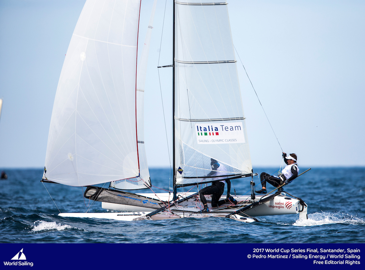 Nei Nacra 17 Ruggero Tita/Caterina Banti (Fiamme Gialle-CC Aniene) chiudono appena fuori dal podio con un 4° posto e Lorenzo Bressani/Cecilia Zorzi (CC Aniene-Marina Militare) in nona posizione confermano le classifiche delle regate di flotta, medaglia d’oro per gli spagnoli Echàvarri Erasun/Van Rijnsoever e argento per gli inglesi Gimson/Burnet e Saxton/Dabson.