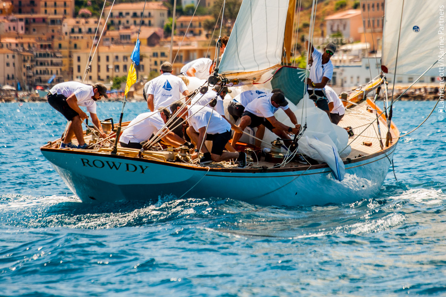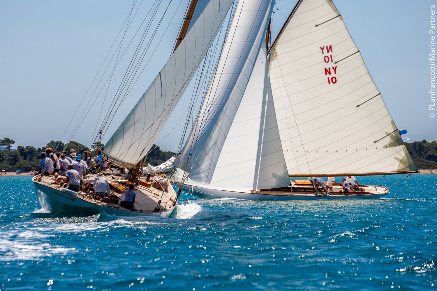 La regata è stata tecnica e molto impegnativa per i concorrenti partiti con un vento da Grecale (10 nodi d’intensità) che è ruotato fino a Maestrale diminuendo progressivamente. Il Comitato di Regata ha deciso al momento giusto di ridurre il percorso, consentendo così lo svolgimento regolare della prova. Una menzione particolare va a Linnet (1905) di Patrizio Bertelli con Pietro D’Alì al timone, che ha girato la prima boa di bolina del percorso odierno al primo posto in tempo reale davanti a imbarcazioni di maggiori dimensioni e dello stesso progettista (Herreshoff) come Spartan (1913), Chinook (1916) e Rowdy (1916). La foto dell’incrocio con Chinook è di Pierpaolo Lanfrancotti.