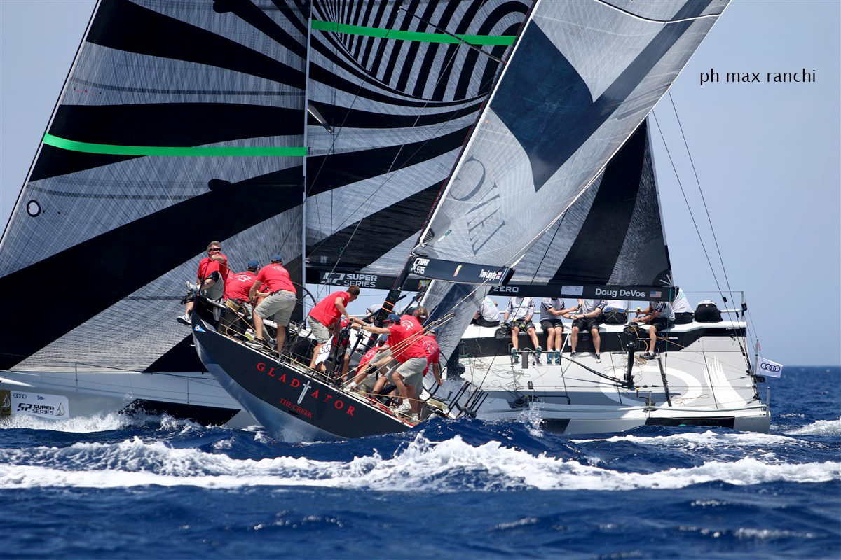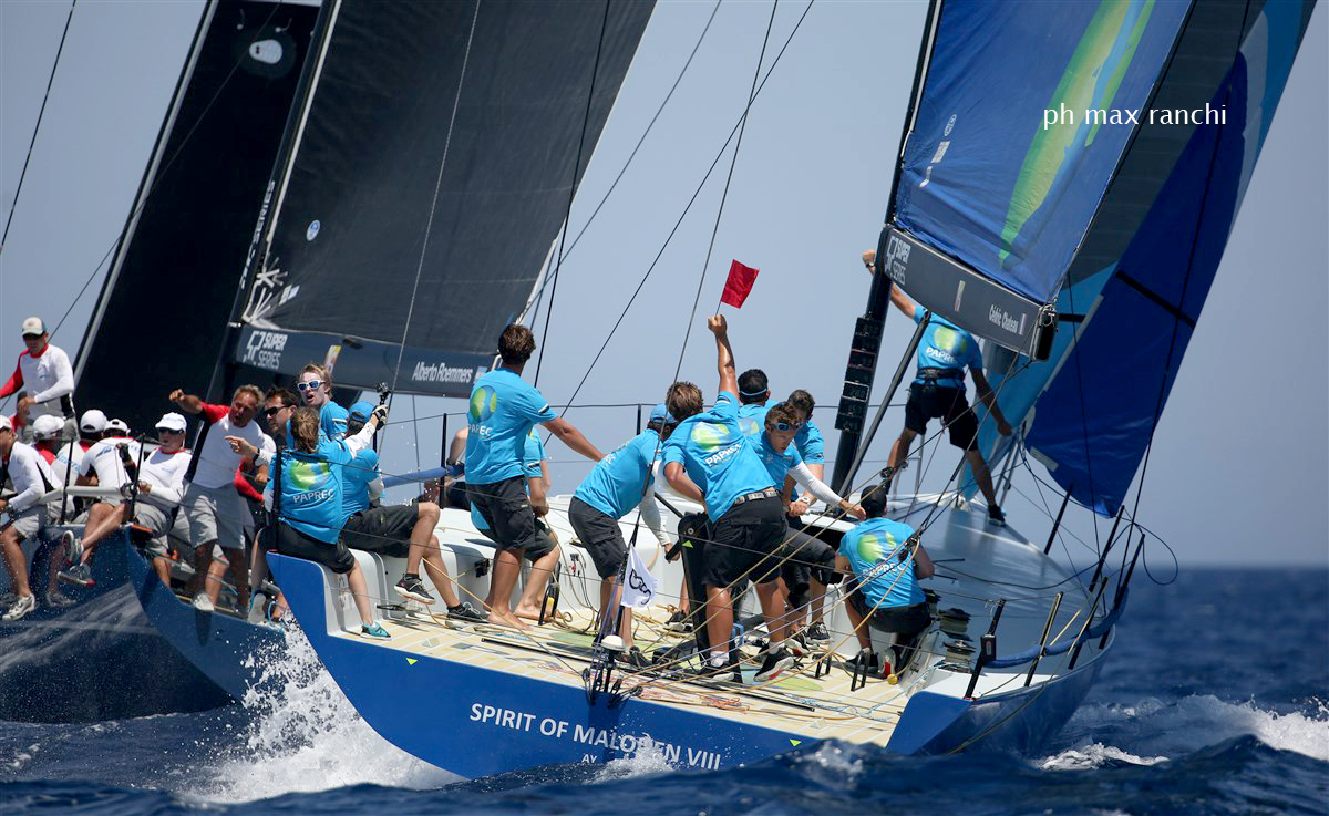 In orario come da programma, il Comitato di Regata, presieduto da Maria Trujillo, da il via alla prima regata, un percorso che prevede un bastone fuori dal Marina di Porto Cervo con boa posizionata a 285° gradi, vento intorno ai 13 nodi di intensità e lato di 2.1 miglia. Partenza in pin per Sorcha e Azzurra che viene “pushato” da Rán Racing, nulla da fare per il team italiano che parte in anticipo, il rientro sulla linea è doveroso, inizio in salita per la barca italiana. Anche Bronenosec cade nel tranello, per loro una bandiera rossa per penalità commessa, il 360 è come una mazzata. Si va verso la boa di bolina, ci sono poche opzioni, Quantum, dopo una partenza libera, riesce a girare la boa in testa. Quantum, Rán Racing, Platoon, Gladiator e Sorcha formano il gruppo di testa, Azzurra e Bronenosec sono distanti. Quantum, stramba al centro del campo di regata, nessun rischio per Terry Hutchinson, al gate Quantum gira ancora in testa, Rán Racing, Platoon e Galdiator seguono. Nelle retrovie Azzurra che si prende una bandiera rossa per un interno in boa con i francesi di Paprec. E’ la cavalcata di Quantum che non soffre nessun tentativo di rimonta, alla boa di bolina c’è qualche intasamento tra Alegre e Bronenosec, Azzurra riesce a passare davanti. L’ultimo lato vede ancora qualche cambiamento nelle retrovie. Quantum mette in tasca una vittoria importante davanti a Rán Racing e Platoon che si rimette in carreggiata.