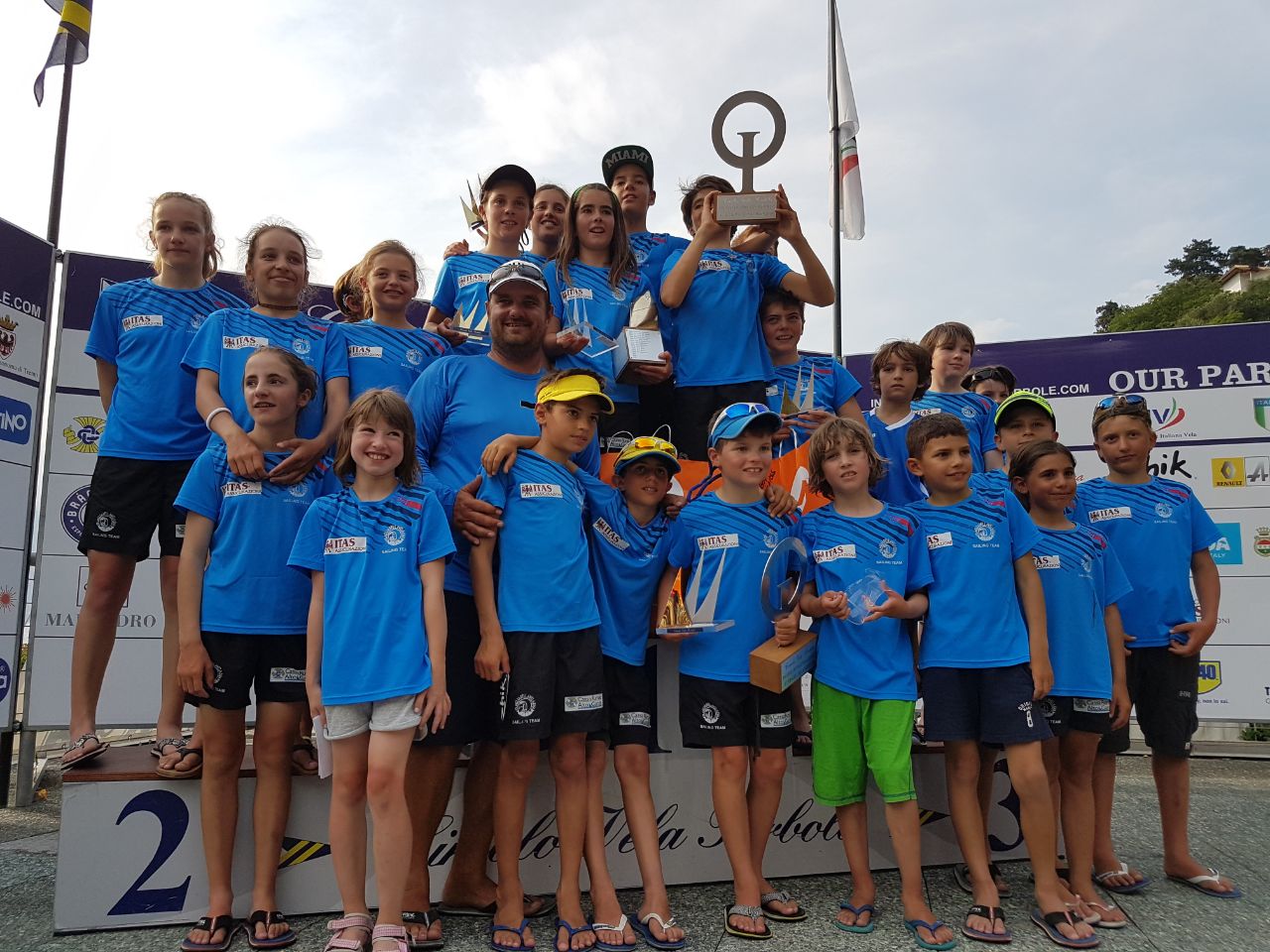 La Fraglia Vela Riva con la sua grintosa e unita squadra Optimist ha vinto il 43° Trofeo d’Argento Optimist FIV, organizzato dal Circolo Vela Torbole. Gli optimisti fragliotti hanno dominato nella categoria cadetti con l’ennesima tripletta formata questa volta nell’ordine da Mosè Bellomi, Alex Demurtas e Marco Franceschini. Anche tra gli juniores podio quasi esclusivamente fragliotto con il secondo posto conquistato da Mattia Cesana (alle spalle dell’ungherese Mate Jeney) e il terzo da Valerio Mugnano. Tra le femmine juniores dominio ancora della Fraglia Vela Riva con la vittoria di Agata Scalmazzi, tredicesima assoluta.