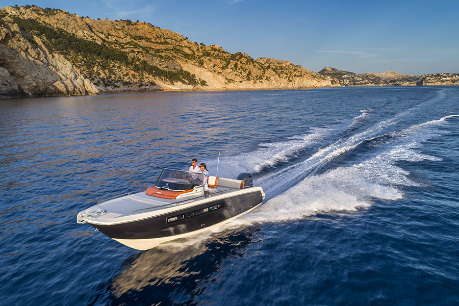 La grande attenzione alle finiture e all’ottimizzazione degli spazi non deve porre in secondo piano le notevoli doti marine della carena, che consente una guida sicura anche con mare formato e un morbido passaggio sull’onda e che può sopportare una potenza massima di 250 cavalli fuoribordo.