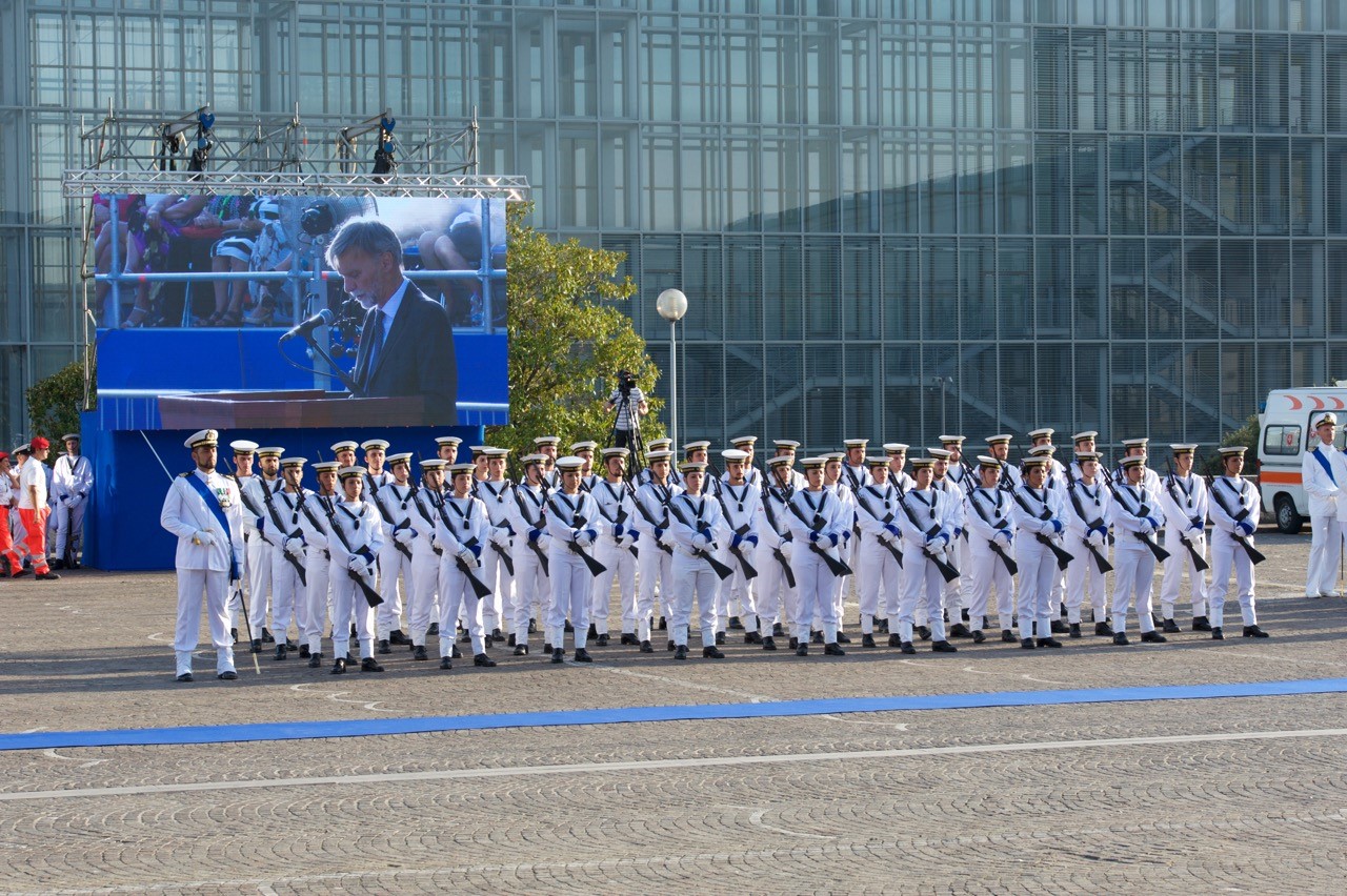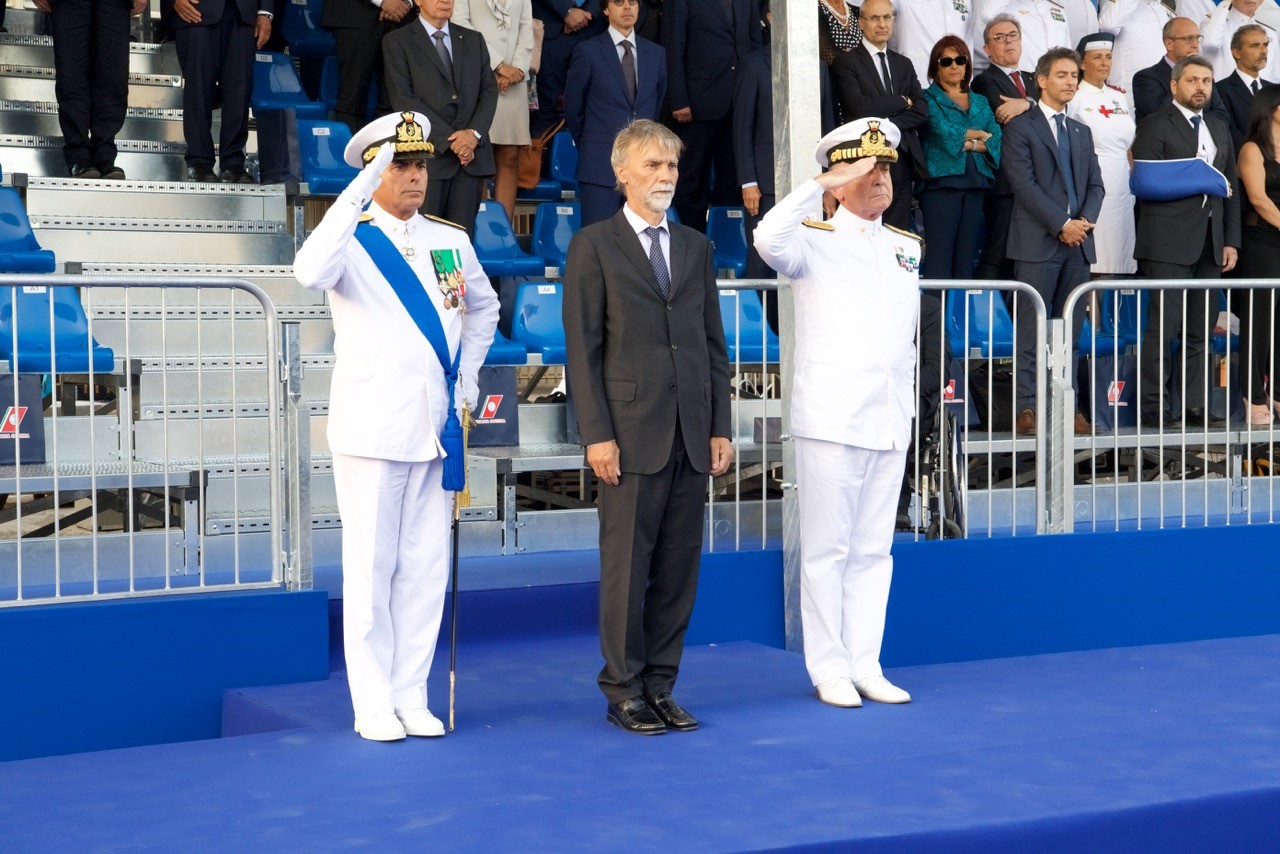 La cerimonia è stata presenziata dal Ministro delle Infrastrutture e dei Trasporti, Graziano Delrio, dal Capo di Stato Maggiore della Marina, Ammiraglio di squadra Valter Girardelli, dagli altri Capi di Stato Maggiore di Forza Armata, e dal Comandante Generale della Guardia Costiera, Ammiraglio Ispettore Capo Vincenzo Melone; a rendere gli onori alle autorità, la Compagnia d’Onore del Corpo delle Capitanerie di porto, una rappresentanza schierata del personale del Corpo e la Banda Musicale della Marina Militare.