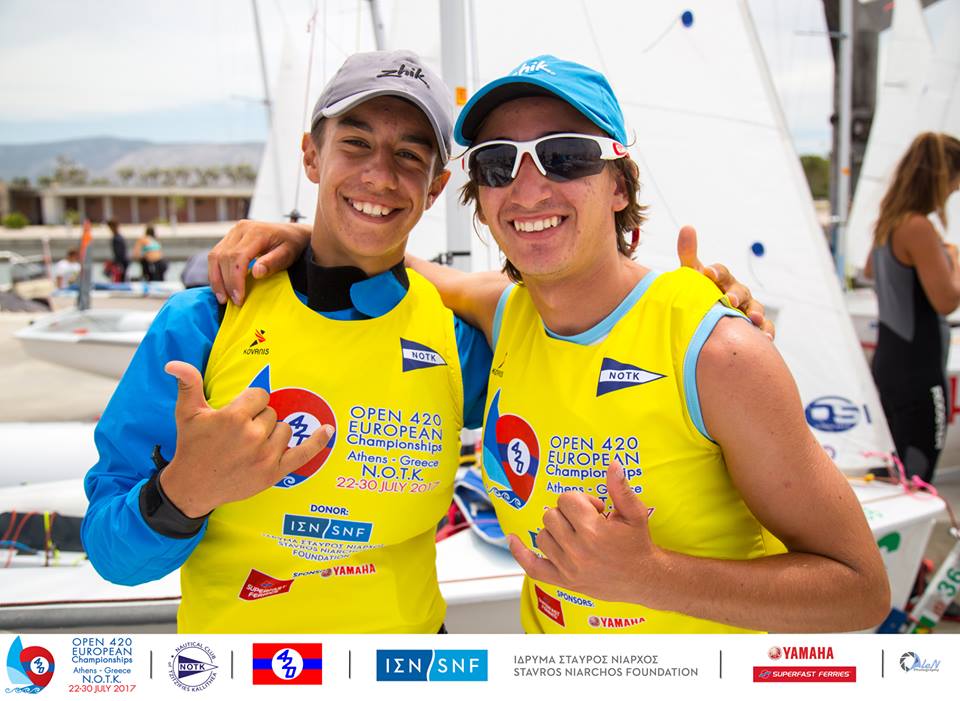 Argento nella flotta Open per Edoardo Ferraro con Francesco Orlando (YC Sanremo) e oro nella categoria Under 17 per Demetrio Sposato con Gabriele Centrone (CV Crotone/CV 3V): questo il ricco bottino italiano al Campionati Europei 420 terminato oggi ad Atene.
