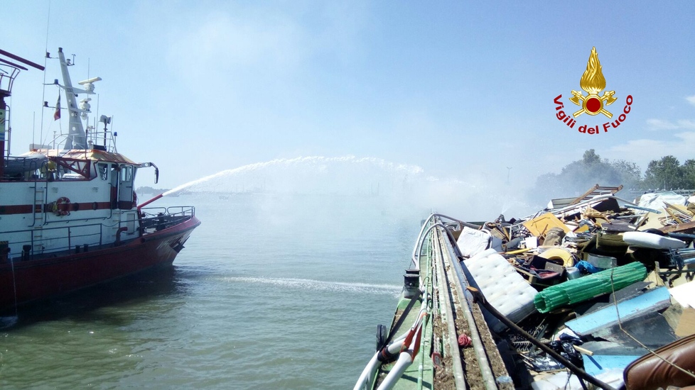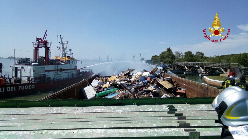 Poco dopo le ore 13 i vigili del fuoco sono intervenuti a Sacca Fisola a Venezia per l’incendio divampato nella stiva di una chiatta della Veritas contenente oltre 1000 metri cubi di rifiuti. Le squadre intervenute da marittima con la motobarca VF 1171 e con due autopompe lagunari e 16 operatori coordinati dal funzionario di turno sono riusciti ad abbassare le fiamme e controllare il rogo.