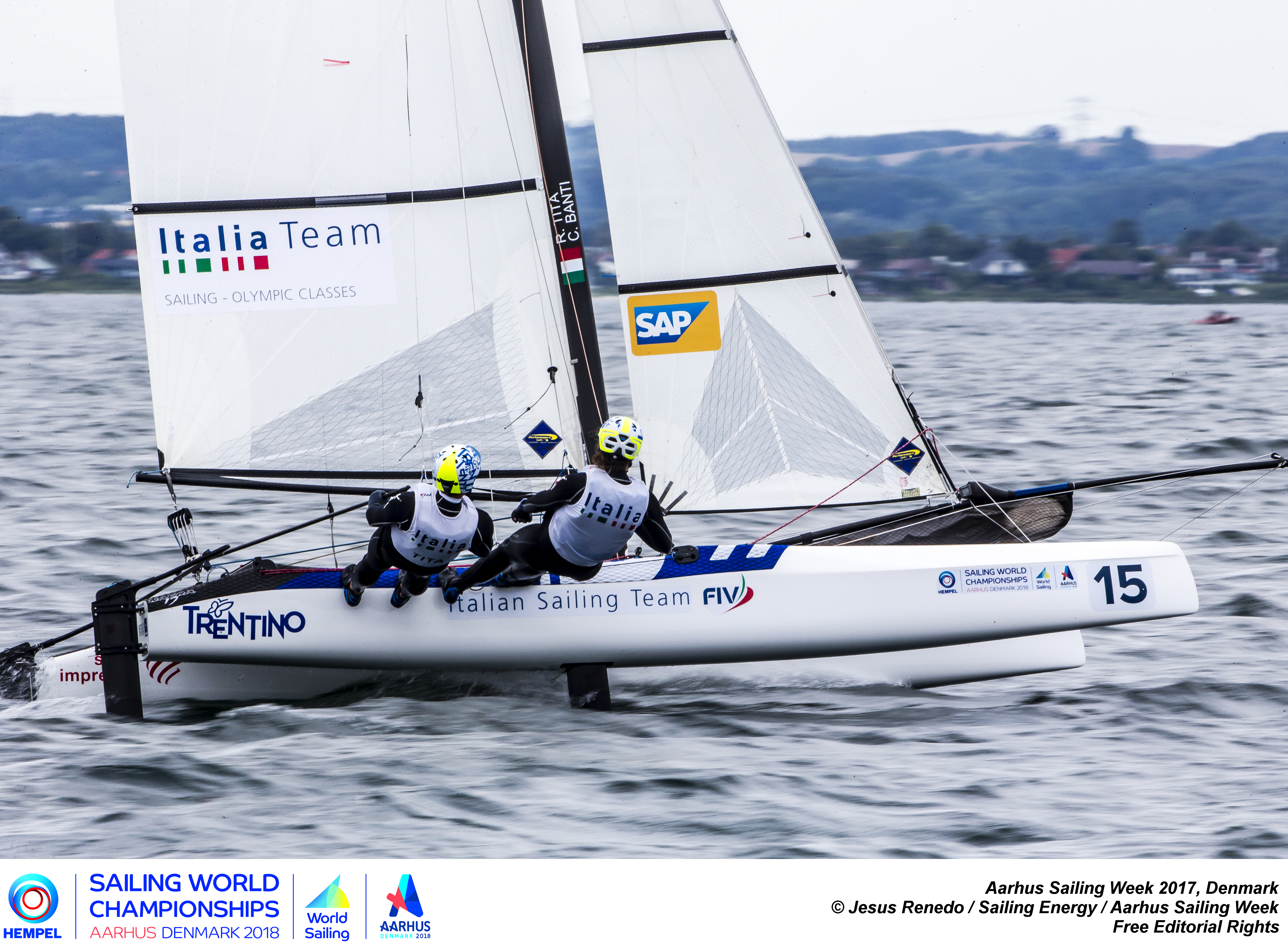 Giornata che parte in salita per la coppia italiana del Nacra17 Ruggero TITA (SV Guardia di Finanza) e Caterina BANTI (CC Aniene): nella prima delle tre prove odierne spezzano un foil, le derive a L che li fanno volare sull’acqua, e quindi non portano a termine la prova. Un equipaggio francese però, gli presta molto sportivamente una loro extra e possono concludere le altre due prove, vincendone una e chiudendo con un sesto l’ultima di oggi. Sono ancora i leader della classifica e sono in attesa di capire da Nacra se riusciranno ad avere un’altra deriva per domani.