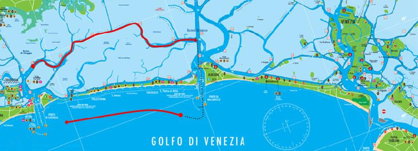 L’ evento si svolgerà in due corse. Partenza 1^ Corsa prevista ore 11:00 in Laguna: Partenza a sud canale della Perognola. direzione NW, tutto il Canale della Perognola, il Canale di Lio, Canale Allacciante, Canale di Valgrande e Arrivo in Canale Spignon. 2^ Corsa in Mare: Partenza a sud diga Malamocco con Isola Pelestrina a dritta e peociare a sinistra Arrivo a nord della diga Nord di Chioggia.