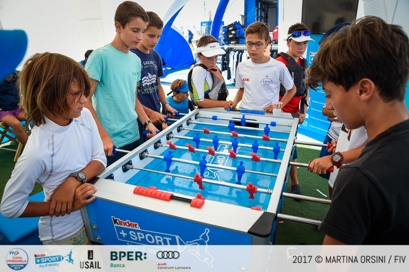 Oltre ai giovanissimi atleti sono scesi oggi in acqua anche 40 ragazzi provenienti dalle scuole vela di tutta Italia, selezionati per partecipare al primo meeting nazionale delle scuola vela. Oggi hanno provato gli Optimist, domani si sposteranno al Beach Club e faranno attività di gioco sport sull’O’Pen Bic e tavole Techno 293.