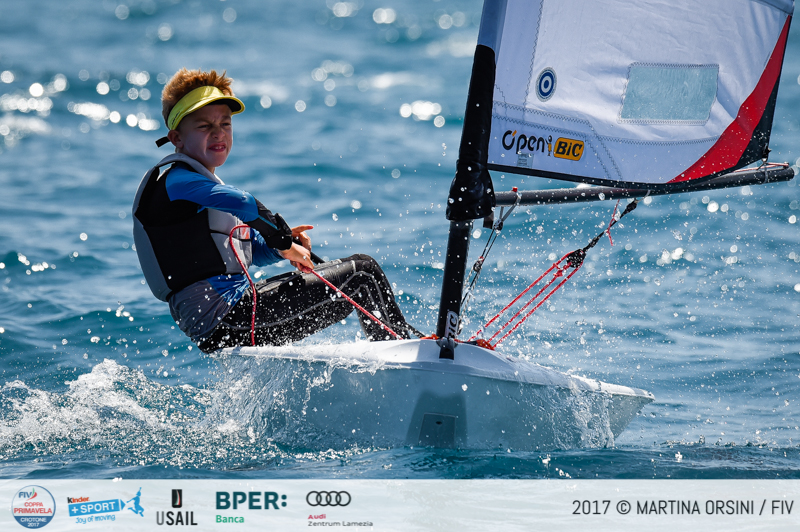 Dopo le tre manche disputate dalla dinamica classe O’Pen BIC, con 30 timonieri al via, in testa è scattato il gardesano Zeno Marchesini (Fraglia Vela Malcesine, 1-1-2), che è figlio d’arte, dal momento che papà Michele è stato olimpico sul Finn ad Atene 2004 e attualmente è Direttore Tecnico della squadra azzurra di vela, e mamma Emanuela a sua volta è stata due volte olimpica in 470 ad Atlanta 1996 e Sydney 2000. Zeno è incalzato al secondo posto da Pietro Cardelli (CN Rimini, 3-2-1), e da Alberto Divella (Cv Bari, 2-3-3). Prima femminile è la sarda Marta Portaluppi (LNI Sulcis).