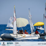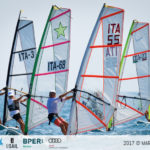 Nei due campi di regata più a Nord, O’Pen BIC e tavole a vela Techno 293 hanno avuto più vento per l’intera giornata, e sono riusciti a disputare tre regate per ciascuna classe. E’ andata meno bene agli Optimist, perchè sul campo di regata antistante al porto, il vento nel primo pomeriggio ha deciso di non collaborare: pertanto gli Optimist hanno disputato solo una regata per ciascuna delle tre flotte in gara (timonieri divisi per data di nascita: 2006, 2007 e 2008).