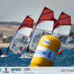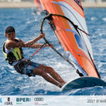 Luca Di Tomassi (LNI Civitavecchia) registra altri tre primi che lo lasciano sereno al primo posto, dietro di lui incalza Nicolò Renna (Circolo Surf Torbole) con gli ottimi parziali 3,3,2 e in terza posizione Daniele Gallo (LNI Civitavecchia) non si da per vinto con 2,2,3. Prima ragazza è Giorgia Speciale (SEF Stamura) che scivola però decima overall a causa delle prove di oggi (12,13,13).
