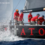 La terza giornata della Menorca 52 SUPER SERIES Sailing Week va in scena con condizioni di vento leggero dai quadranti meridionali, finalmente sembra che l’instabilità dei primi due giorni possa essere ormai un brutto ricordo. Il primo start in orario alle 12.05 con un intensità di 10 nodi ed una boa di bolina posizionata per 190°. Arriva il primo “general recall”, c’è molta tensione, tutto da rifare. Finalmente arriva il primo start di giornata, Alegre forza e si auto squalifica. Ottima partenza per Azzurra al centro dell’allineamento, Platoon, Quantum, iniziano a vedersi i primi attacchi. Al primo passaggio in boa è proprio Platoon a girare in testa alla flotta davanti a Quantum, Paprec, Gladiator, Bronenosec, Provezza e Azzurra in ritardo. Il lato di poppa con queste condizioni non concede molte opzioni per poter cambiare lo schieramento di testa. Platoon domina la flotta davanti a Quantum e Paprec, Bronenosec guadagna un posto. E’ una bella battaglia tra i due inseguitori ala corona, Platoon e Quantum sono molto vicini ad un lato dalla fine della prima prova di giornata. Platoon, Quantum e Provezza compongono il podio della prima prova, Azzurra soltanto sesta, si assottiglia il vantaggio del team italiano a favore sopratutto dell’armata tedesca di Platoon.