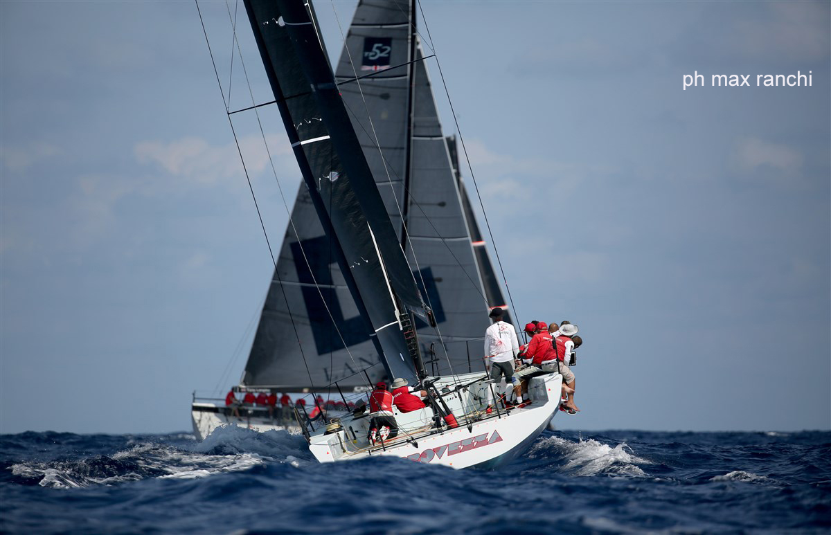 La quarta giornata della Menorca 52 SUPER SERIES Sailing Week va in scena con condizioni di vento leggero dai quadranti meridionali, finalmente sembra che l’instabilità dei primi due giorni possa essere ormai un brutto ricordo. Il primo start in orario alle 12.05 con un intensità di 10 nodi ed una boa di bolina posizionata per 90°. Allo start è già bagarre, Quantum Sled e Bronenosec dettano il passo, Azzurra parte in sofferenza, ci sono pochi punti di margine, diventa una situazione difficile, alla bolina gli americani sono in testa, la barca italiana è in ottava posizione, il vento cala, si va verso il gate, buon rientro per i francesi di Paprec, ma soprattutto di Platoon che in terza posizione rosicchia ad Azzurra molti punti sulla classifica generale, un duello aperto, i risultati sono di vitale importazna in questa giornata che prevede tre prove. Qauntum, Gladiator, Sled e Platoon, per fortuna Azzurra aggancia un sesto posto che vale oro, con un gran recupero, sono ancora quattro i punti di vantaggio su Platoon, la matematica non va presa in considerazione in questi momenti, la grinta e la consistenza faranno la differenza alla fine.