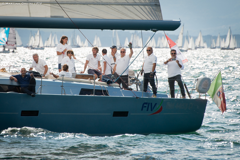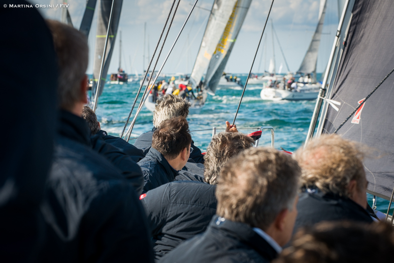 Sulla lunga linea di partenza, una per tutti i 2101 scafi, anche due imbarcazioni con a bordo l’intero Consiglio della Federazione Italiana Vela, un Grand Soleil 58 e uno Sly 61 messi a disposizione dai Cantieri del Pardo. Al timone Vittorio Bissaro con Maelle Frascari, su un’imbarcazione e Ruggero Tita con Caterina Maria Banti sull’altra.
