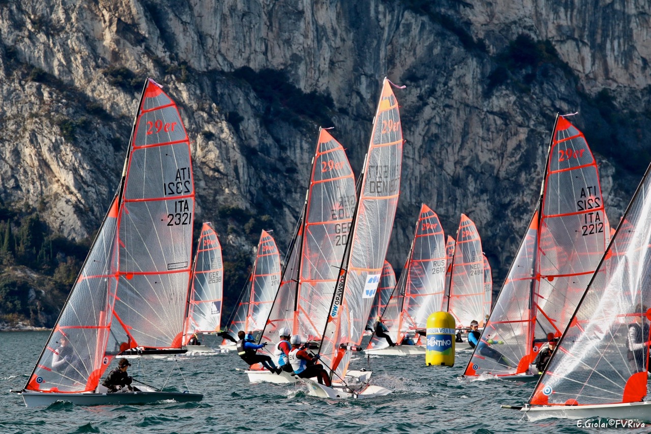 Una prova con vento da sud leggero ha inaugurato la decima e ultima tappa della 29er Eurocup, in programma fino a domenica alla Fraglia Vela Riva. Confermato il numero record di 120 equipaggi che sono stati suddivisi in due batterie. Purtroppo la nuvolosità creatasi dopo le ore 14:00 ha fermato il vento da sud che aveva permesso lo svolgimento di una prova tecnica e agevole per tutti gli equipaggi, alcuni dei quali alla prima esperienza in regata 29er. Ai nordici la vittoria di ciascuna batteria con i finlandesi Korhonen-Berner e le norvegesi Dahl Andersen-Edland, primi. A seguire inglesi, sloveni, tedeschi, russi, francesi e primi degli italiani Cestari-Carbonelli, quinti nella propria flotta. Oggi, venerdì partenza la mattina alle 8:30 per affidarsi al vento più usuale della stagione, quello che soffia da nord. In caso di vento forte si potranno mettere in evidenza quegli equipaggi più titolati, che sicuramente faranno la differenza in condizioni più impegnative.