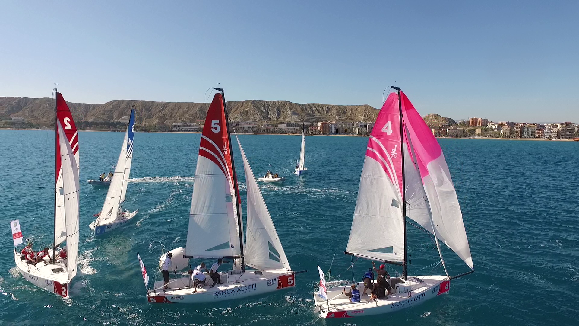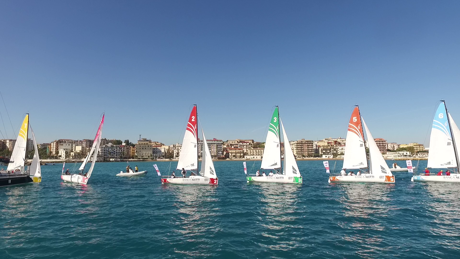 In esordio di finale, nel Flight 1, regata con vento leggero fino a 8 nodi e niente onda: a vincere le tre prove che permettono a tutti i Club di scendere una volta ciascuno in acqua sono tre team adriatici, Circolo Nautico Sambenedettese, Club Vela Portocivitanova e Yacht Club Adriaco.