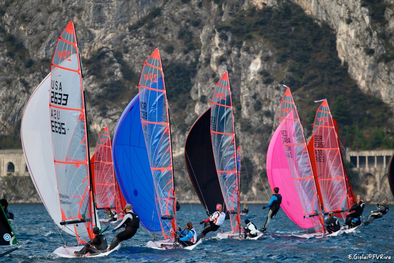 Sabato, penultimo giorno di regate della 29er Eurocup organizzata dalla Fraglia Vela Riva, è stato caratterizzato ancora una volta da una levataccia mattutina, che è stata sicuramente ripagata dato che questa volta il vento da nord è stato un po’ più sostenuto e duraturo, permettendo la disputa di ulteriori 3 belle regate, portando a 6 il numero totale. Qualche nodo in più (12 nodi con qualche raffica superiore) è bastato per fare la differenza tra la flotta con i più titolati equipaggi, che si sono subito messi in evidenza. Si sono portati infatti agevolmente al comando i francesi Revil-Guevel (bronzo ai mondiali e secondo equipaggio youth) oggi partiti un po’ meno decisi con un quinto, ma inanellando poi due vittorie, che li vedono in vetta alla classifica provvisoria con 6 punti di vantaggio sui vice-campioni europei in carica, gli svedesi Kasper-Berglund (2-1-2). Svolta anche per i britannici Robins-Vennis, che con due primi e un terzo nella propria batteria e l’applicazione dello scarto sono balzati dalla 45esima alla terza posizione provvisoria! Nessun miglioramento invece per gli equipaggi azzurri, sebbene siano passati venticinquesimi e primi degli azzurri, Boletti-Torchi. L’Italia purtroppo non ha in regata gli equipaggi che sono stati di punta nelle ultime stagioni: i campioni europei in carica portacolori del Circolo Vela Arco Zampiccoli-Chistè e Porro-Leoni, sono assenti per un cambio in classe olimpica FIV. Domenica, ultimo giorno di regate, si deciderà il podio e la premiazione sarà anche un’occasione per ringraziare i regatanti, ma anche tutto lo staff a terra e in acqua, tra cui segreteria, posaboe e Comitato di regata, che in questi giorni hanno permesso – nonostante le sveglie con il buio – di disputare il massimo di regate possibili per il vento che c’è stato. Questa mattina ancora partenza presto, alle 8:30.