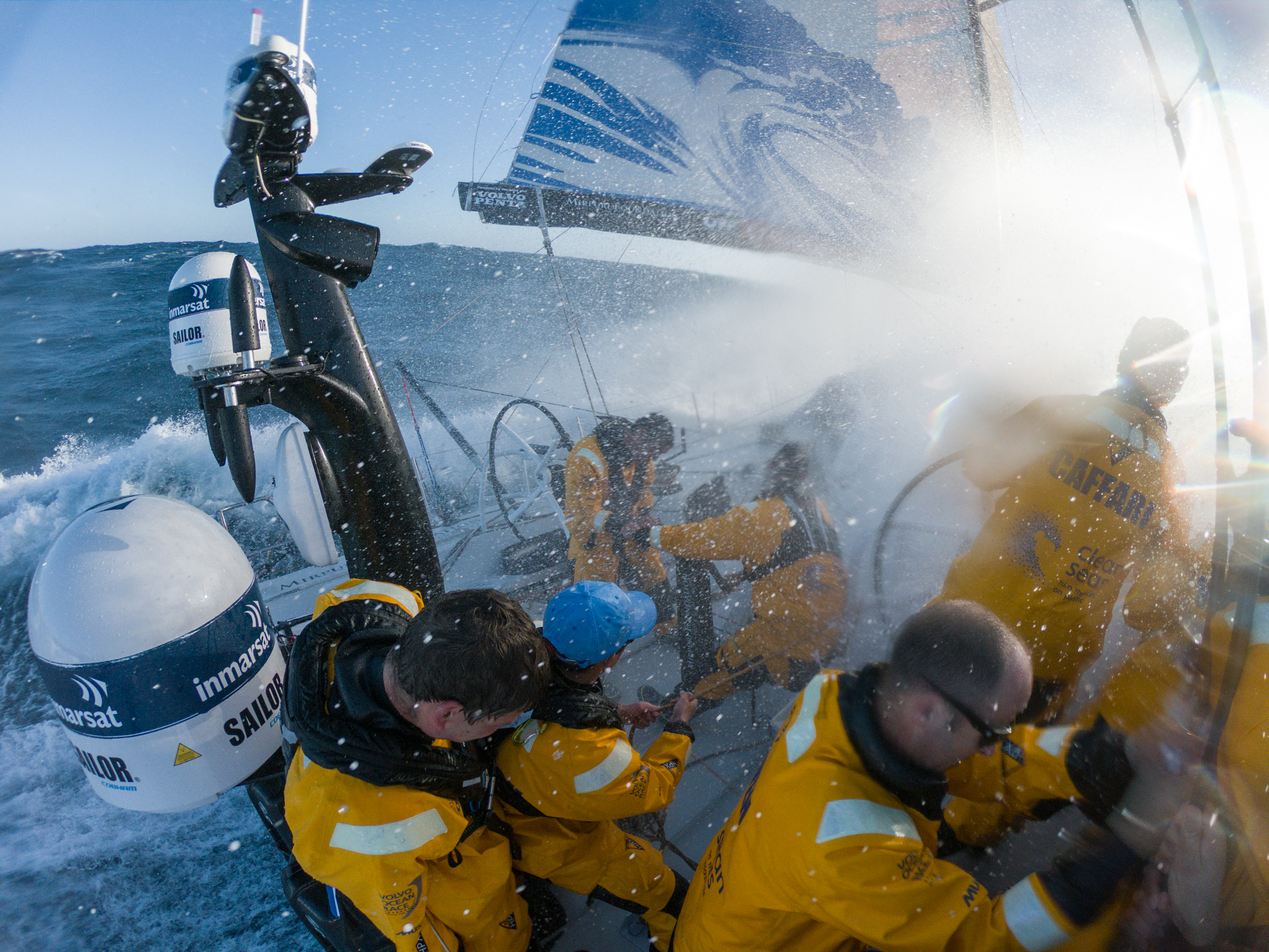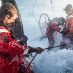 Sam Greenfield, l’onboard reporter di Turn the Tide on Plastic ha inviato a terra una descrizione piuttosto forte delle prime ore di navigazione della seconda tappa: “Ho visto cose folli… Un’onda ha trascinato via Bianca (Cook, la giovane velista neozelandese). Fortunatamente era legata, ma c’era talmente tanta acqua che il suo salvagente si è gonfiato. E’ rimasta sdraiata sul fondo del pozzetto, travolta da centinaia di litri di acqua. Una scena paurosa. Liz (Wardley) è riuscita a raggiungerla e l’ha aiutata. Non so come facciano a stare in coperta in queste condizioni. quando sono sceso sottocoperta avevo la bocca piena di sale e le mani che tremavano troppo per scrivere. Non trovo le parole per descrivere la forza dei ragazzi che navigano su questa barca.”