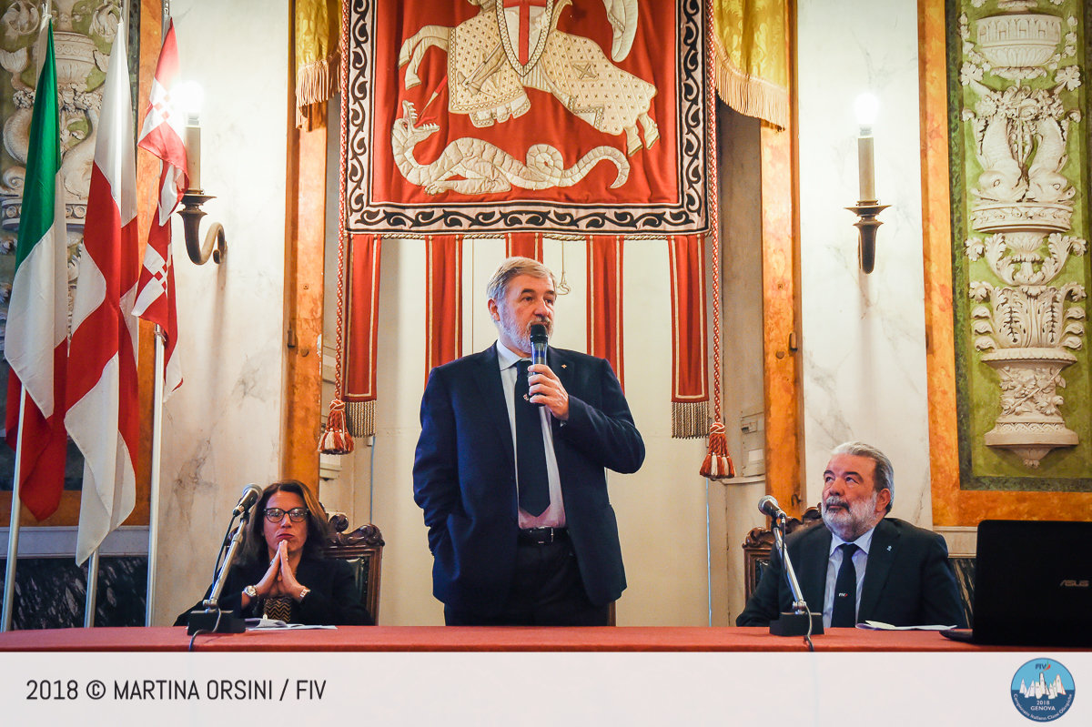 Si è tenuta questa mattina a Genova nel Salone di Rappresentanza di Palazzo Tursi, la conferenza stampa di presentazione del CICO 2018, il Campionato Italiano Classi Olimpiche, che si terrà proprio a Genova dal 21 al 25 marzo prossimo. A rappresentare il Comune di Genova, il sindaco Marco Bucci e il consigliere con delega allo sport Stefano Anzalone, l’assessore regionale alle attività giovanili con delega allo sport, Ilaria Cavo, per lo Yacht Club Italiano – circolo capofila degli undici delegati dalla FIV – il presidente Nicolò Reggio, per UCINA – Confindustria Nautica la presidente Carla Demaria e per la Federazione Italiana Vela il presidente Francesco Ettorre ha mandato i saluti con un video, perché impossibilitato a presenziare.