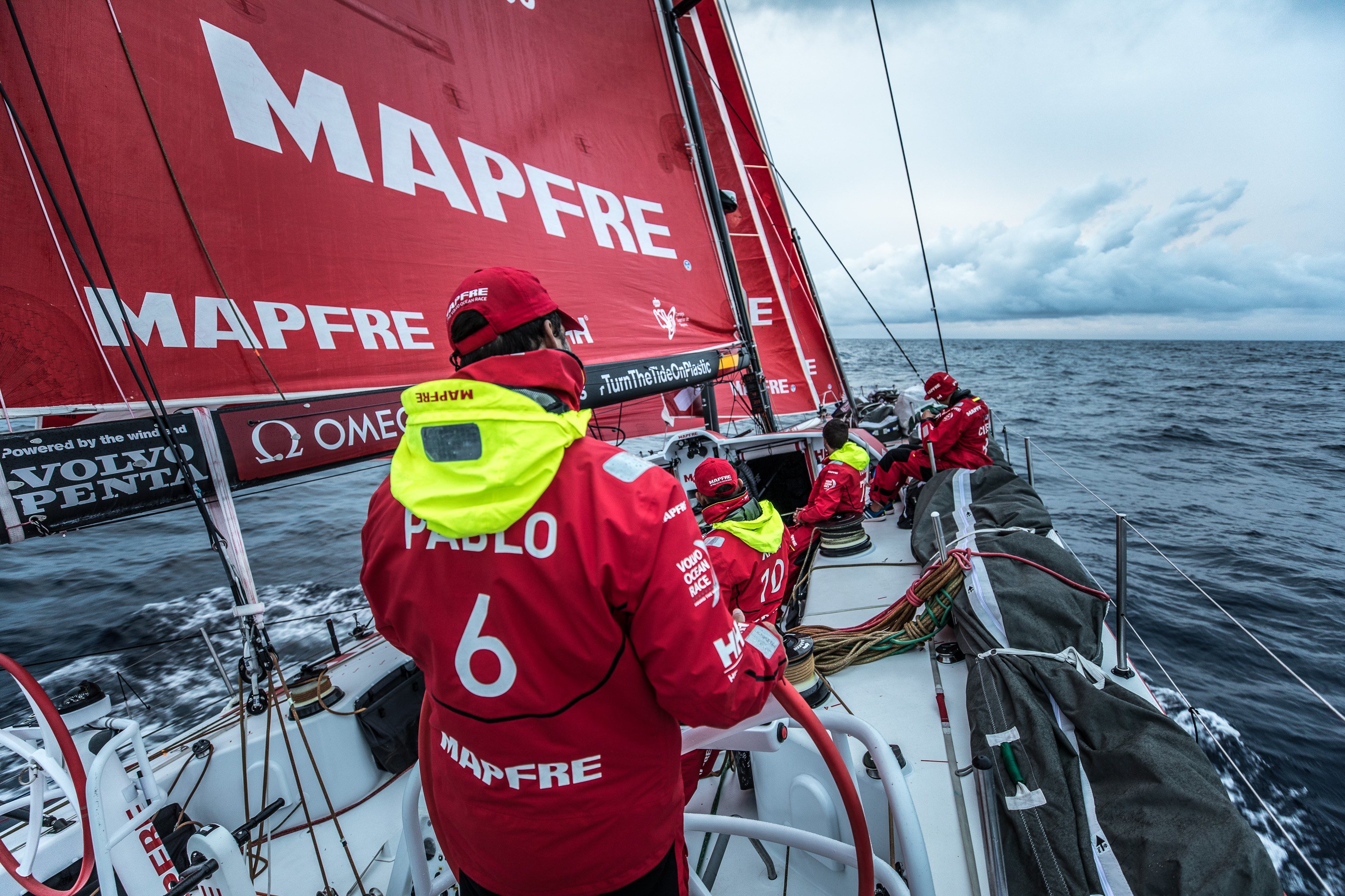 A bordo di MAPFRE, l’equipaggio ha un atteggiamento positivo riguardo la situazione: “Siete sicuri che stiamo andando ad Auckland? Facciamo rotta nord-est…” Ha detto Louis Sinclair, con senso dell’umorismo. “Sì è così, è sulla nostra prua. Non possiamo sbagliarci, ci seguono tutti.” Gli ha risposto Pablo Arrarte, indicando le altre barche, vicinissime. “Pablo, sono abbastanza sicuro che la Nuova Zelanda sia in quella direzione, a sud-est.” Ha a sua volta risposto il kiwi Blair Tuke,indicando con la mano. “E’ casa mia, amico, lo so dove sta!”
