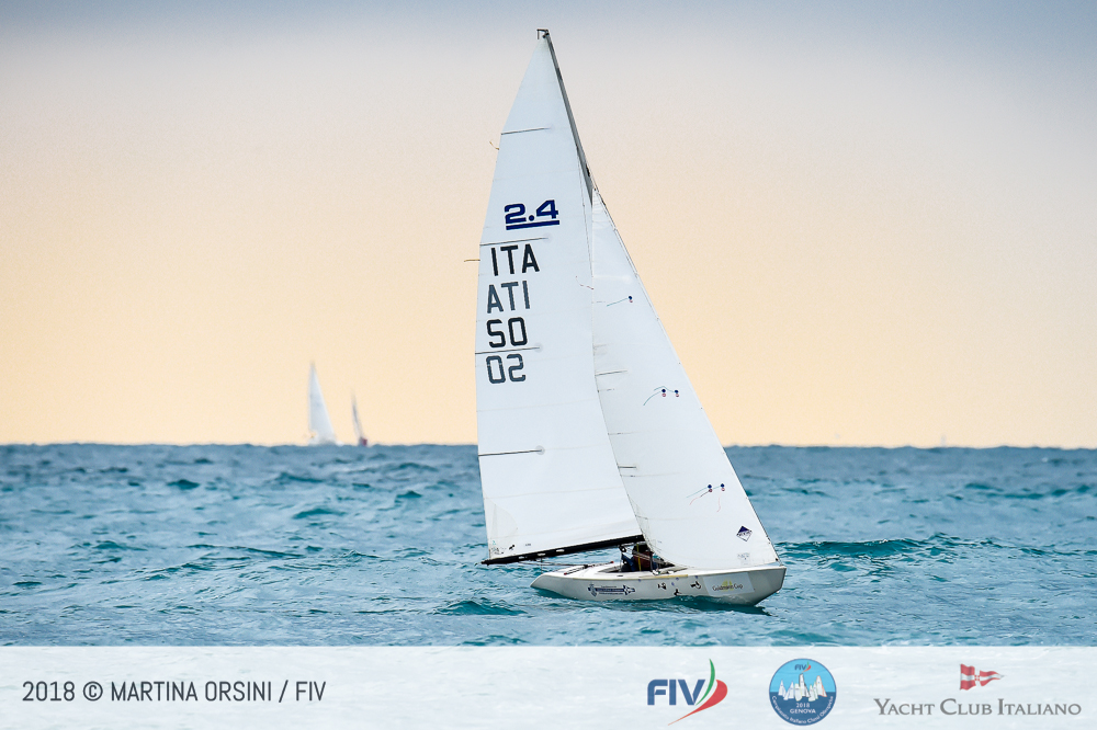 Ben due prove per la classe paralimpica dei 2.4mR, che anche loro hanno regatato con uno leggero scirocco. Continua la serie super positiva di Antonio Squizzato (SC Garda Salò), che scrive altri due primi posti sullo scoreboard. Elena Polo D’Ambrosio (LNI Milano) cede il secondo posto al compagno di Circolo Nicola Redavid (LNI Milano) i cui parziali di oggi sono 4 e 2.