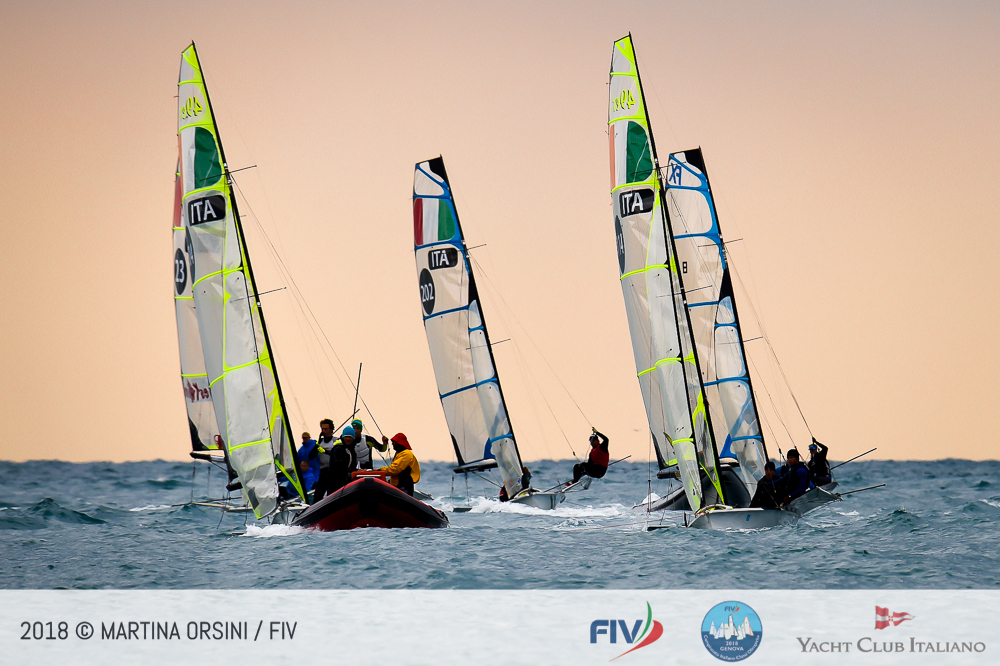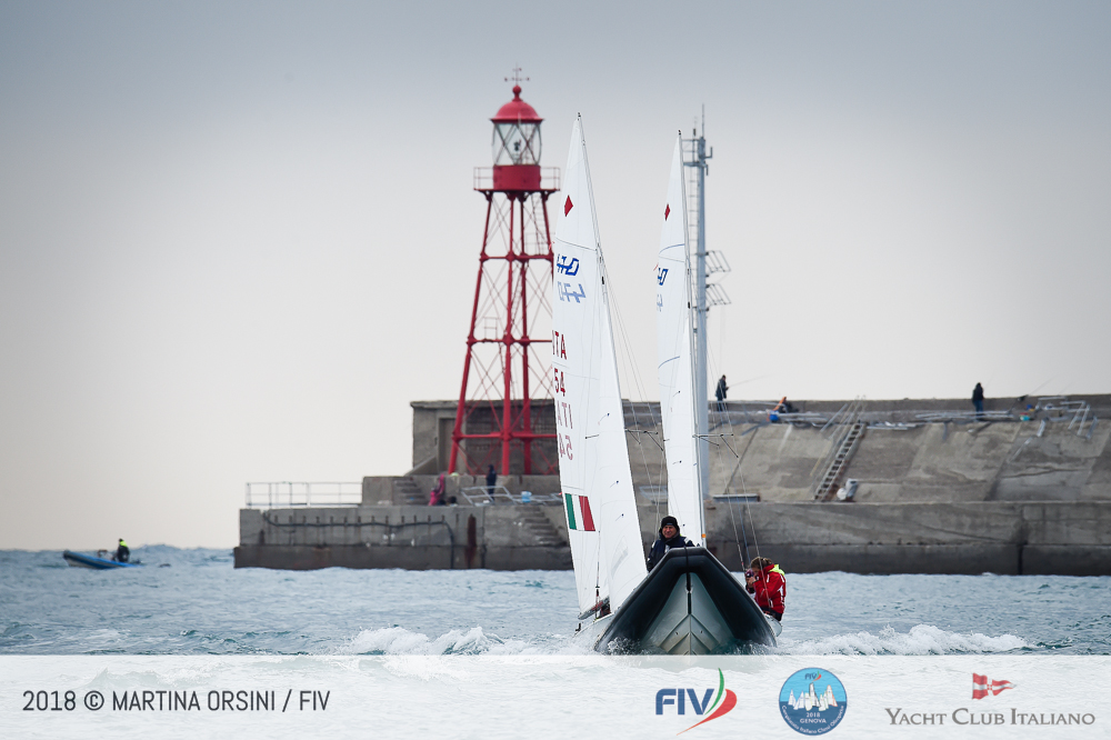 Genova si è svegliata sotto un cielo coperto e vento da sud est questa mattina per la terza giornata di regate del CICO 2018. Tutti presto sull’attenti al padiglione B di Jean Nouvel della Fiera di Genova, per le 9,30 erano in acqua atleti, comitati e posa-boe dello Yacht Club Italiano, e dei 14 Circoli liguri, pronti per la partenza delle 10. Partenze che sui campi più a ponente non hanno avuto luogo (Nacra 17, 49er, Finn), o, nel caso del campo dei 470, è avvenuta ma la prova è stata poi annullata per un salto di oltre 30° del vento. Più fortunate la classi sui campi di levante.