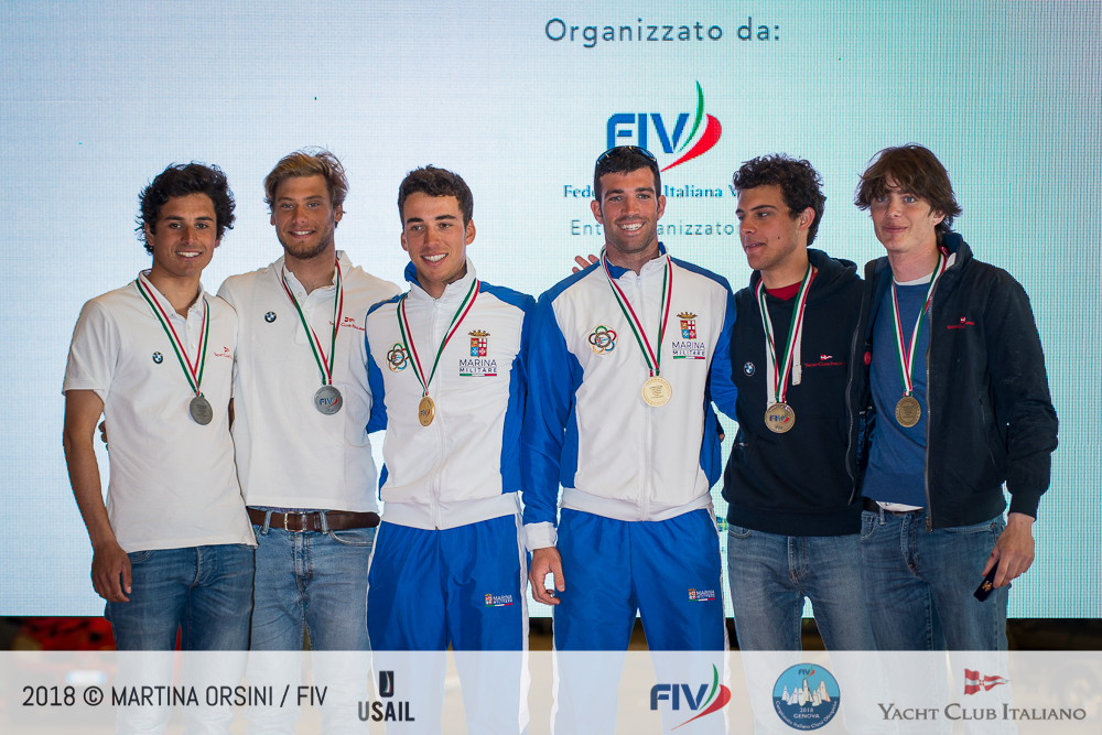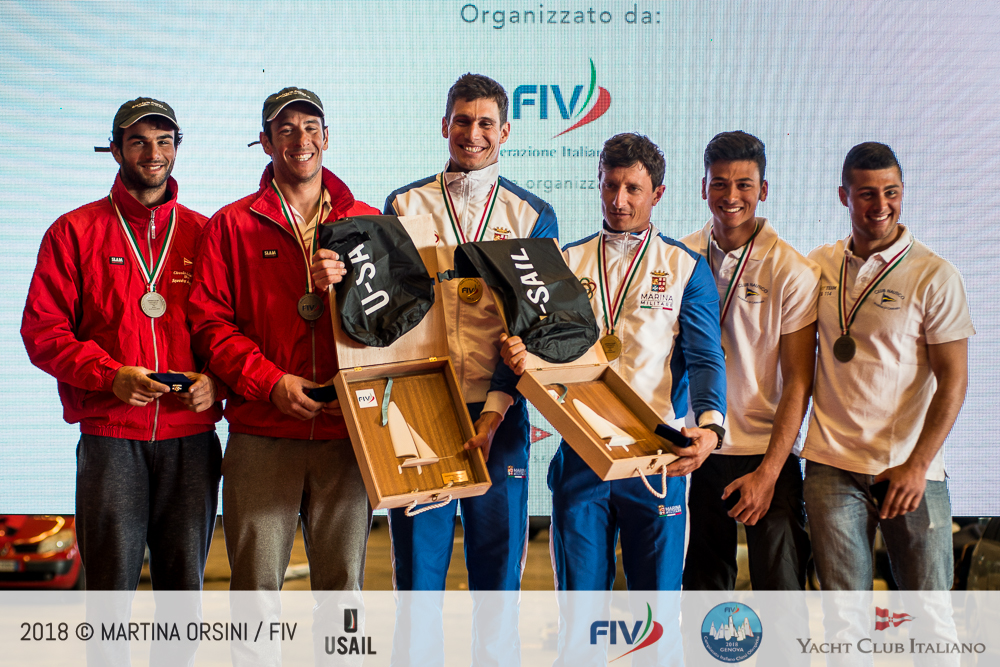 Sono Campioni Italiani 49er Uberto Crivelli Visconti e Gianmarco Togni (Marina Militare) con una fila di risultati impeccabile – 6 vittorie su 9 prove – e 8 punti dai secondi, Simone Ferrarese e Valerio Galati (CdV Bari) e 13 dai terzi Edoardo Campoli e Lorenzo Cianchi (CN Marina di Carrara).
