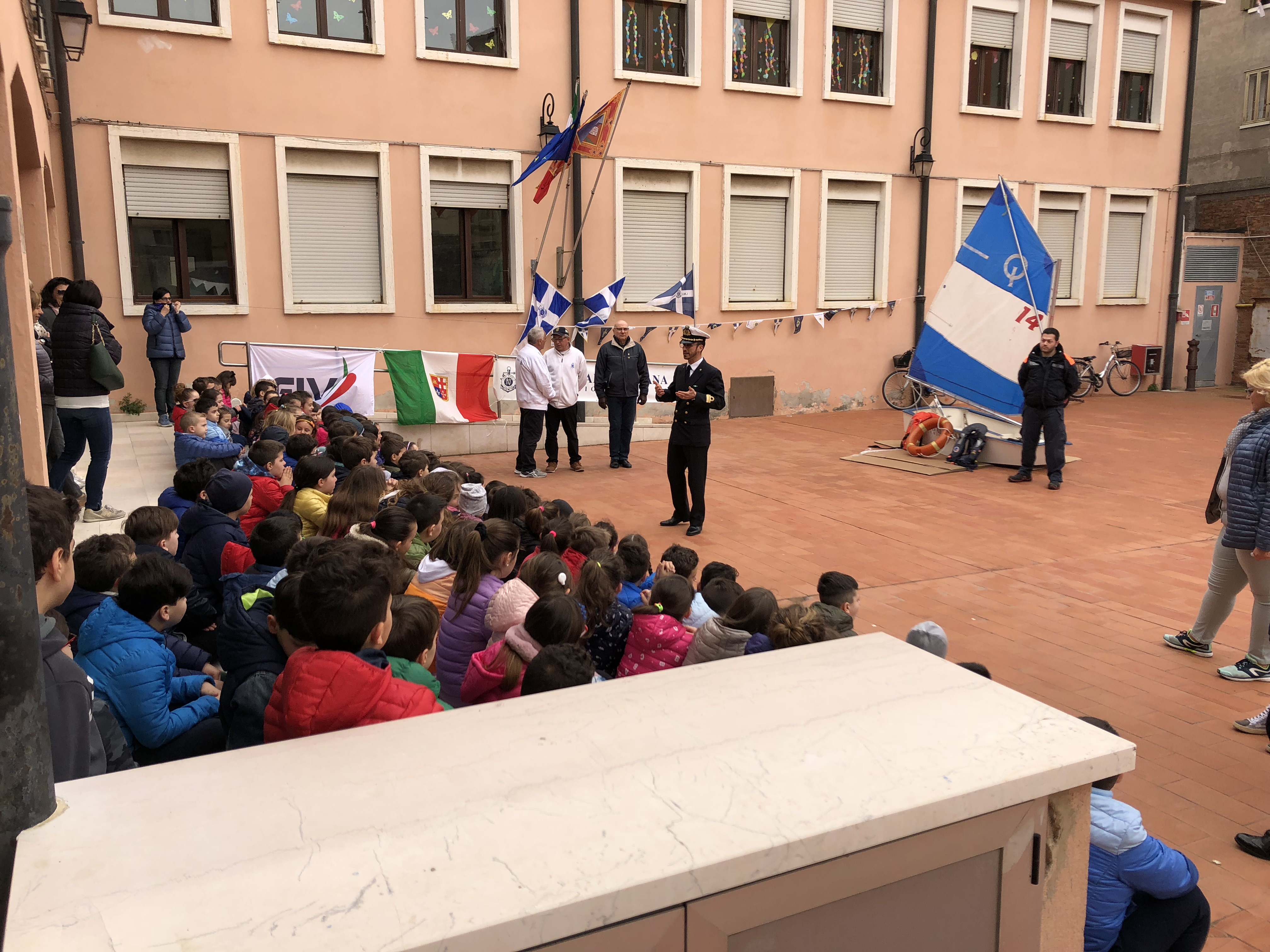 Nella mattinata odierna la Capitaneria di Chioggia ha tenuto un primo incontro presso la Scuola primaria “Gregorutti” dell’Istituto comprensivo “Chioggia 1”, con la partecipazione della Lega Navale italiana -Sezione di Chioggia- che ha mostrato ai ragazzi anche una piccola unità a vela classe “optimist”. Centrale il tema del rispetto dell’ambiente marino e delle sue preziose risorse. Gli alunni, circa 150 delle cinque classi della scuola primaria, hanno anche partecipato indossando le cinture salvagente, provando ad imbarcare a secco sulla piccola barca a vela, e simulando con radio portatili VHF chiamate di soccorso alla Capitaneria di Porto in caso di emergenza in mare.
