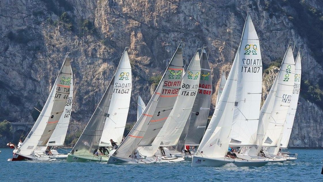 La giornata di sabato ha avuto un inizio difficile a causa delle nubi minacciose sopra a Monte Baldo, che non promettevano nulla di buono. Attorno alle 14.00 il comitato di regata ha deciso di dare il via alla competizione. Fortunatamente, poco dopo, un bellissimo vento da nord sui 15 nodi, arrivato nel corso del pomeriggio fino a 25 nodi, ha permesso ai 9 Ufo 22 in gara di disputare le tre prove in programma.