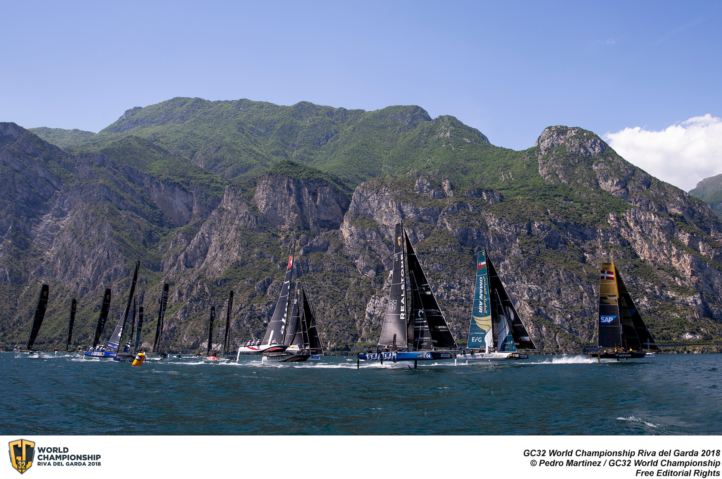 Tutte e cinque le regate di oggi hanno avuto partenze al lasco, con i 13 GC32 che si sono poi trovate a stretto contatto sulla prima boa, come fosse la prima curva di un circuito di Formula 1.