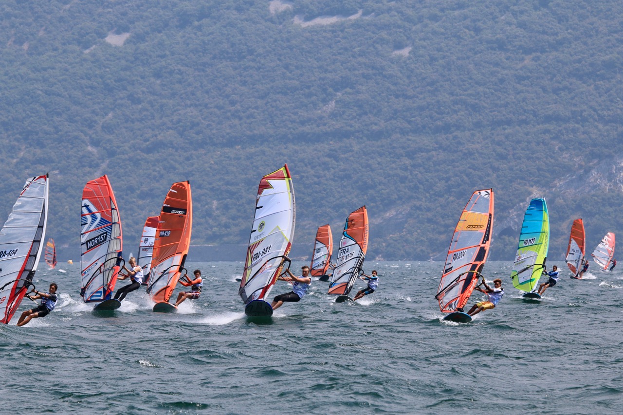 La categoria più numerosa con 56 atleti vede tre francesi nelle prime tre posizioni con Damien Arnoux primo, seguito da Basile Jacquin e Doom Nathan. L’italiano Francesco Scagliola (Reggio Calabria, CV Scirocco) campione del mondo uscente, nella prima heat ha realizzato un decimo ed è primo degli italiani davanti al portacolori del Circolo Surf Torbole Daniel Louis Slijk, tredicesimo.