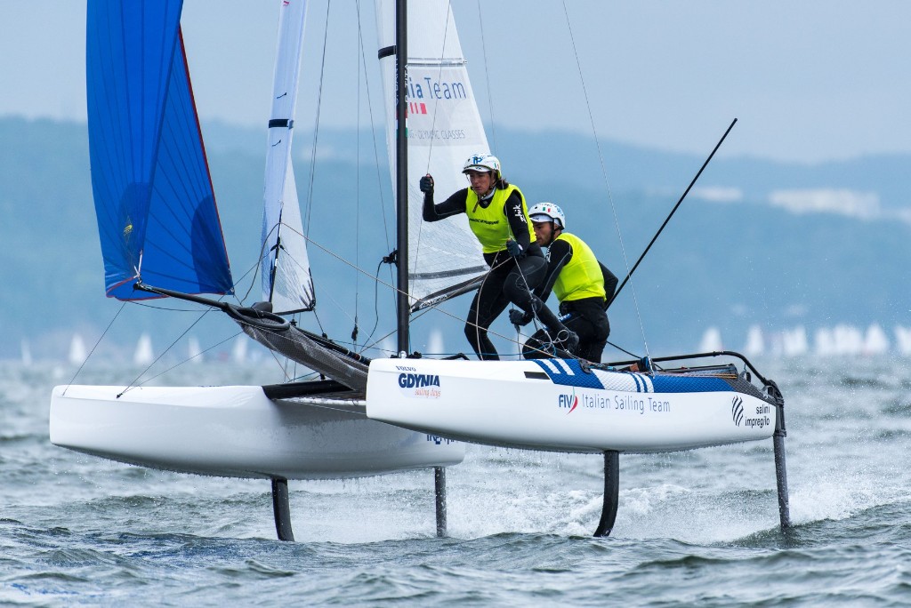 “Hanno dimostrato di essere davvero velocissimi con vento sostenuto – ci dice il tecnico FIV per i Nacra 17 Gabriele Bruni – sopra i 12 nodi sono davvero imbattibili, mentre con aria più leggera la flotta è più compatta. Sono felice della loro prestazione e soprattutto di quella di Caterina che ha davvero sofferto in silenzio per tutta settimana per un ginocchio dolorante. Approfitto per dire che la vera forza della squadra sono le prodiere, fanno il lavoro più fisico, faticoso e pericoloso, valgono molto e in acqua si vede! Ma devo fare i complimenti a tutta la squadra, che si è comportata egregiamente, quando arriviamo a questi eventi esce la buona preparazione invernale, non perdiamo tempo in scelte tecniche, qui conta solo la regata, occupandoci del lavoro mentale, perché siamo già certi dell’assetto delle barche.”