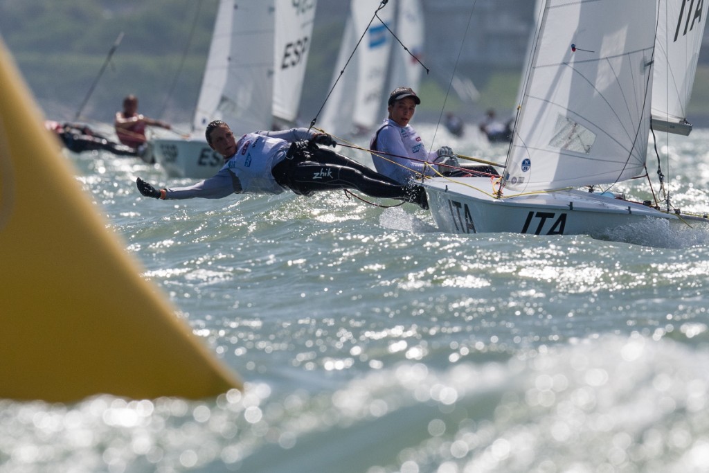 Nei 420 maschili continuano a comandare la classifica gli americani Hermus/Henry, che vincono anche le due prove di ieri, australiani e polacchi restano secondi e terzi; i nostri Matthias Menis con Nicolas Starc (SV Barcola e Grignano) prendono una bandiera nera nella partenza della prima prova – che scartano – e con il nono nella seconda prova si trovano in decima posizione. Le ragazze del 420, Giorgia Sinigoi con Sara Zuppin (YC Cupa/CN Sirena), con i parziali di 3 e 7, sono quinte a otto punti dal podio. Qui troviamo ancora le sorelle americane Cowles, le britanniche e le spagnole nelle stesse posizioni.