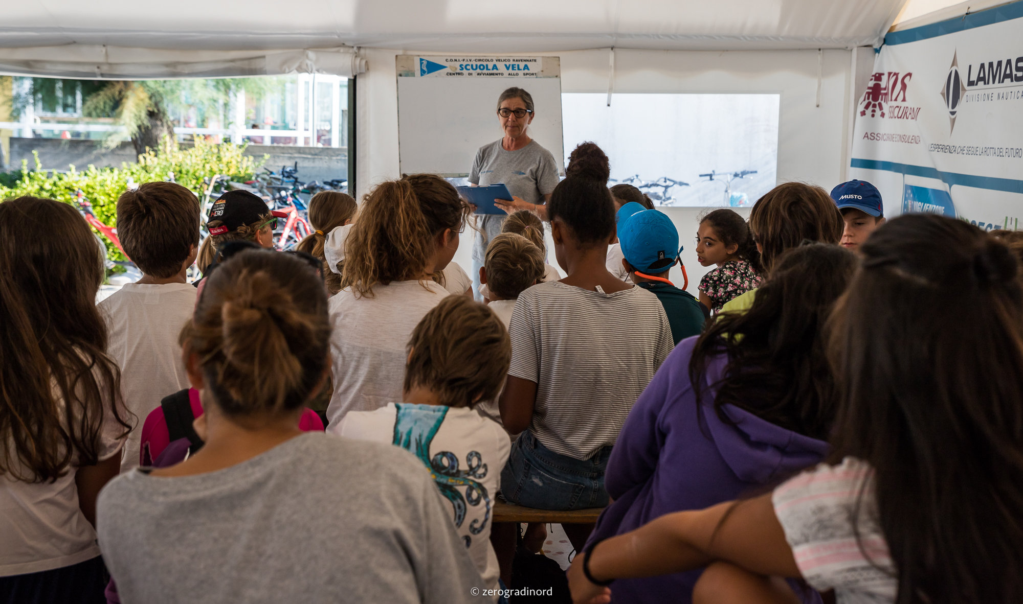 Non solo vela, però: la Scuola Vela del Circolo Velico Ravennate, in partnership con diverse associazioni, impegna i piccoli velisti anche in laboratori creativi, motori e in supporto alla difesa dei mari: “Le giornate dei nostri atleti sono molto piene, qui al Circolo Velico Ravennate: si inizia la mattina alle 8.30 armando le barche per uscire in mare. Tre volte alla settimana, si fa attività fisica in spiaggia con giochi di abilità organizzati dalla dottoressa in Scienze Motorie Francesca Casadio, anche se la maggior parte della giornata è dedicata alla vela. Dopo la pausa pranzo, che si condivide con tutti i partecipanti nei locali del Circolo Velico Ravennate, riprendono le uscite in mare o si partecipa ai laboratori. Il nostro socio Sauro Servadei inizia i piccoli velisti all’arte marinaresca, insegnando loro i principali nodi e raccontando le più belle storie di marinai; l’ente di ricerca Cestha organizza attività volte alla sensibilizzazione per la tutela dei mari, mentre l’associazione Tralenuvole promuove laboratori didattici, letture animate ed altre attività di animazione”.
