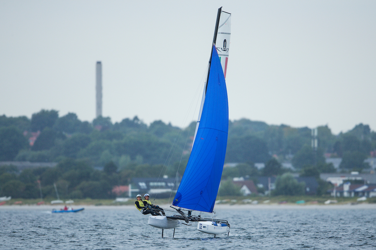 Come nei Nacra 17, dove nella gialla, in cui regatavano i nostri Ruggero Tita – Caterina Banti (SV Guardia di Finanza – CC Aniene), Vittorio Bissaro – Maelle Frascari GS Fiamme Azzurre – CC Aniene) e Lorenzo Bressani – Cecilia Zorzi (CC Aniene – Marina Militare), hanno concluso due prove e neanche una nella blu. Per Tita – Banti davvero una spiacevole giornata, registrano un 16 nella seconda prova e vengono squalificati nella prima – dopo aver finito quarti – per aver perso una protesta voluta da un equipaggio britannico per una collisione in fase di pre-partenza. Bissaro – Frascari segnano nello scoresheet di oggi un 16esimo ed un 20esimo posto (che scartano); Bressani – Zorzi hanno un 27esimo ed un 11esimo (scartano il primo); Gianluigi Ugolini – Maria Giubilei (Compagnia della Vela Roma – CV Ventotene) dopo un bell’11esimo devono scartare un DNF nella seconda prova. Non esiste una classifica generale aggiornata a causa del diverso numero di prove tra le due flotte. In quella blu, dopo due tentativi di partenza, sono stati fatti rientrare gli equipaggi a terra con quattro di questi con una squalifica per la prova 4 di domani.