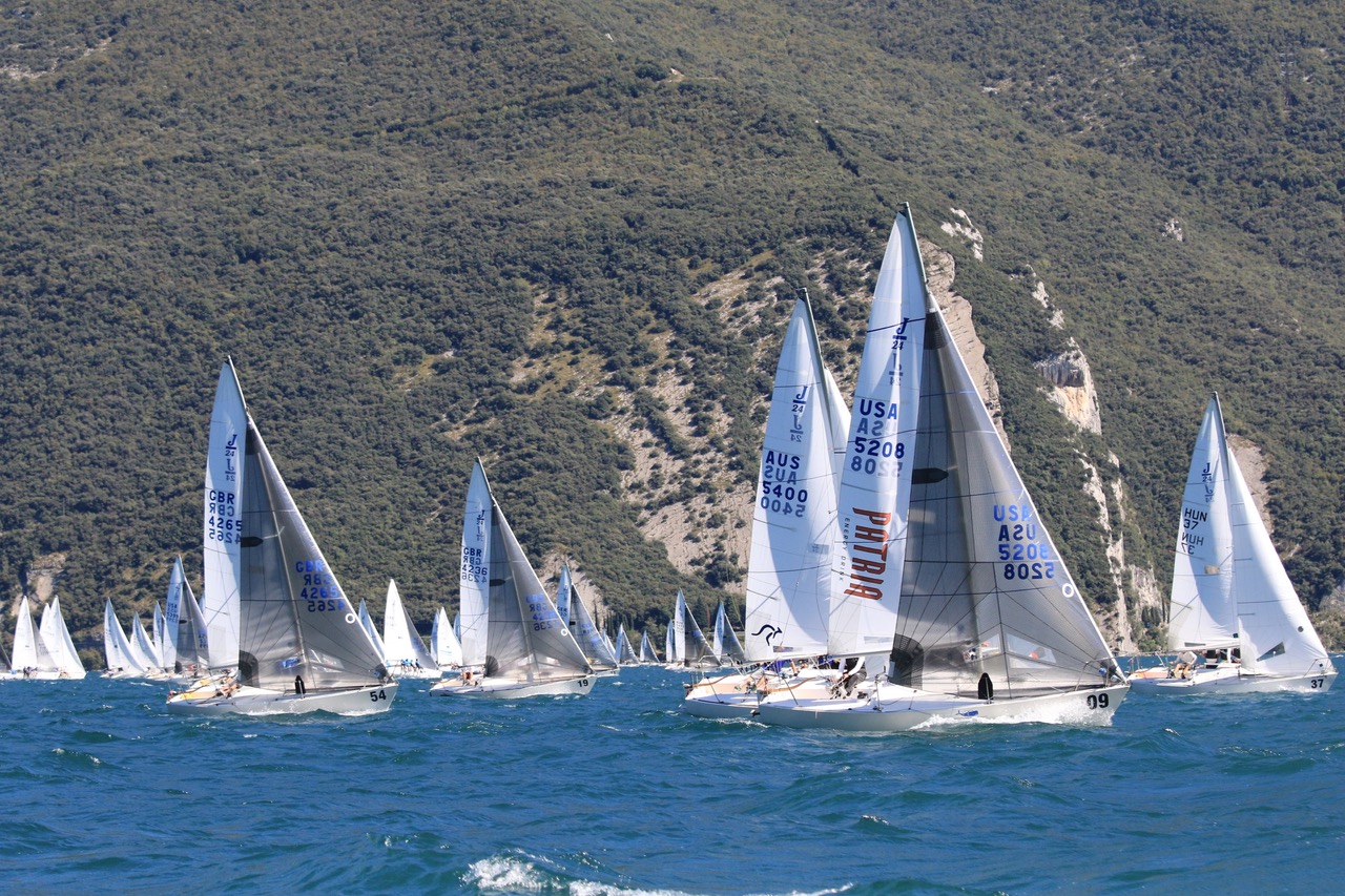 Uno spettacolo vedere le 89 barche pronte sulla stessa linea di partenza (con barca Comitato al centro tra due gommoni/pin) e soprattutto con i colorati spinnaker scendere il vento, ma altrettanto spettacolari e agguerriti i giri di boa, che non hanno risparmiato qualche contatto e passaggio ravvicinato. Gli statunitensi, in testa all’albo d’oro dei mondiali disputati dal 1979 al 2017 con 22 vittorie contro le 4 di Italia e Brasile, si sono già fatti notare dato che occupano la prima e terza posizione della classifica provvisoria. Ma in realtà il primo della classifica provvisoria, l’americano campione del mondo 2014 Will Welles, ha a bordo anche gli italiani Andrea Casale (alla tattica) e l’armatore trentino Giuliano Cattarozzi, che evidentemente tiene ancora testa alla figlia Federica pluri-campionessa nel Laser giovanile.