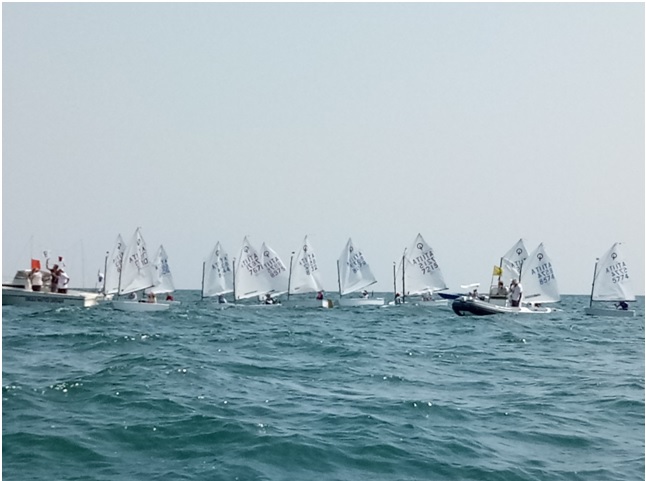 Insolita data di metà agosto per questa regata Optimist del Circolo Nautico Chioggia che quest’anno ha riunito in una unica manifestazione il Trofeo Adalberto Voltolina e il Trofeo Pugno come prova per il Campionato Zonale XII^ FIV; se il periodo di ferie ha certamente sottratto un po’ di partecipanti alla regata ci hanno pensato le condizioni meteomarine a rendere bella la manifestazione con una giornata strepitosa di sole, vento da Nord Est inizialmente sui 14/15 nodi e onda formata poi in calo assieme al vento che ha comunque tenuto fino al completamento delle 3 prove previste dal programma. La puntualità del CdR presieduto da Roberta Righetti e l’efficienza dell’assistenza a mare predisposta dall’Istruttore Riccardo Chiereghin hanno permesso di iniziare le operazioni in perfetto orario, aspetto fondamentale per sfruttare un vento che a dire il vero si prevedeva più leggero e meno duraturo, invece ad attendere in mare la flotta di 20 piccole imbarcazioni c’era un sorprendente “borino” sui 15 nodi e una bella onda, fastidiosa in bolina ma divertente nelle andature portanti.