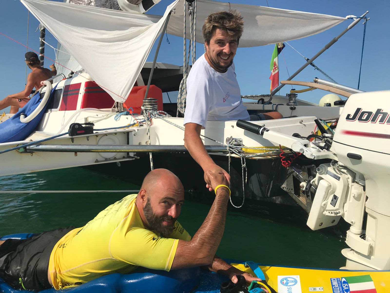 Marco Rossato ha ripreso il suo viaggio nel migliore dei modi: brindando “in mare” con gli amici dell’associazione HappyWheels. Il 28 agosto, infatti, di fronte al Bagno degli Americani a Tirrenia, un gruppo consistente di esperti ed appassionati di Surf, Sup, Adapative Surfing e vela hanno augurato “buon vento” a Marco e Muttley, suo fedele cagnolino. Un incontro davvero speciale a cui ha partecipato, tra gli altri, il presidente e surfista di livello mondiale Massimiliano Mattei; due sport diversi ma con dei forti tratti comuni di impegno sociale dove il concetto di limite o “chiusura” non esiste perché il diritto di amare il mare e la vita è “4ALL”.