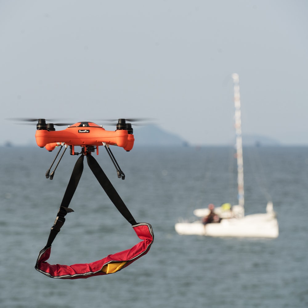 Quattro rotori anfibi da 620kv e un corpo galleggiante in ABS da 3 millimetri con un cuore di acciaio inossidabile che consente di atterrare in mezzo alle onde, galleggiare a lungo e ripartire facendosi beffe della salsedine. Appositamente progettato per affiancare i Lifeguard, Splash Drone è nato dal crowdfunding KickStarter e può operare in tutte le condizioni meteorologiche sganciando un galleggiante del peso di un kg. in attesa che il bagnino arrivi per effettuare il recupero in sicurezza o che i mezzi di soccorso si facciano strada tra le onde.