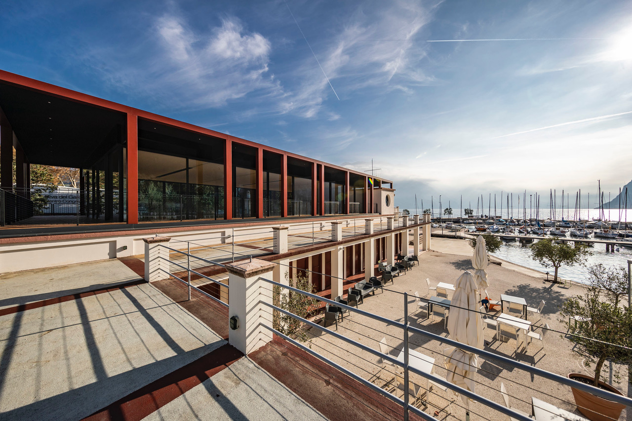 Sabato 24 novembre alla Fraglia Vela Riva sarà una giornata intensa: finita la stagione agonistica e sportiva ci si ritrova in questo fine 2018 per inaugurare la nuova sala polifunzionale e per festeggiare i 90 anni di attività del sodalizio rivano, che non smette di affrontare nuove sfide e creare nuove opportunità culturali, oltre che sportive. Alle 11:00 ci sarà l’inaugurazione ufficiale alla presenza delle autorità per poi arrivare al classico taglio del nastro con l’apertura della mostra allestita dal gruppo Amici dell’Arte con tema “la Fraglia, il Lago e le Vele”. Una prima occasione per sfruttare al meglio la nuova sala, realizzata proprio nel novantesimo dalla fondazione, secondo lo stile architettonico di Giancarlo Maroni. Si è trattato di un intervento architettonico che ha dovuto tenere presente dell’unitarietà con la Spiaggia degli Olivi, in quanto parti organiche del complesso. Tra i caratteri distintivi, elemento unificante e caratterizzante della struttura, la successione di pilastri architravati, ispirati alle limonaie tipiche del paesaggio benacense; un elemento ispiratore, strutturale ed espressivo, che delimita e sottolinea il perimetro della terrazza. A questa si innesta una sequenza di lame orizzontali in acciaio che costituisce la struttura portante della sottile copertura al di sotto della quale è collocato il volume della sala, interamente vetrato e costituito da serramenti scorrevoli con superficie leggermente specchiante a riflettere discretamente il paesaggio e rafforzare l’idea di “vuoto”. Il volume è arretrato rispetto al filo della copertura, dando luogo a loggiati coperti che alludono alla distribuzione delle ali delle cabine della Spiaggia. Si è ottenuto quindi un intervento dotato di quella leggerezza e quel senso di “non costruito” che caratterizza il disegno del complesso monumentale maroniano.