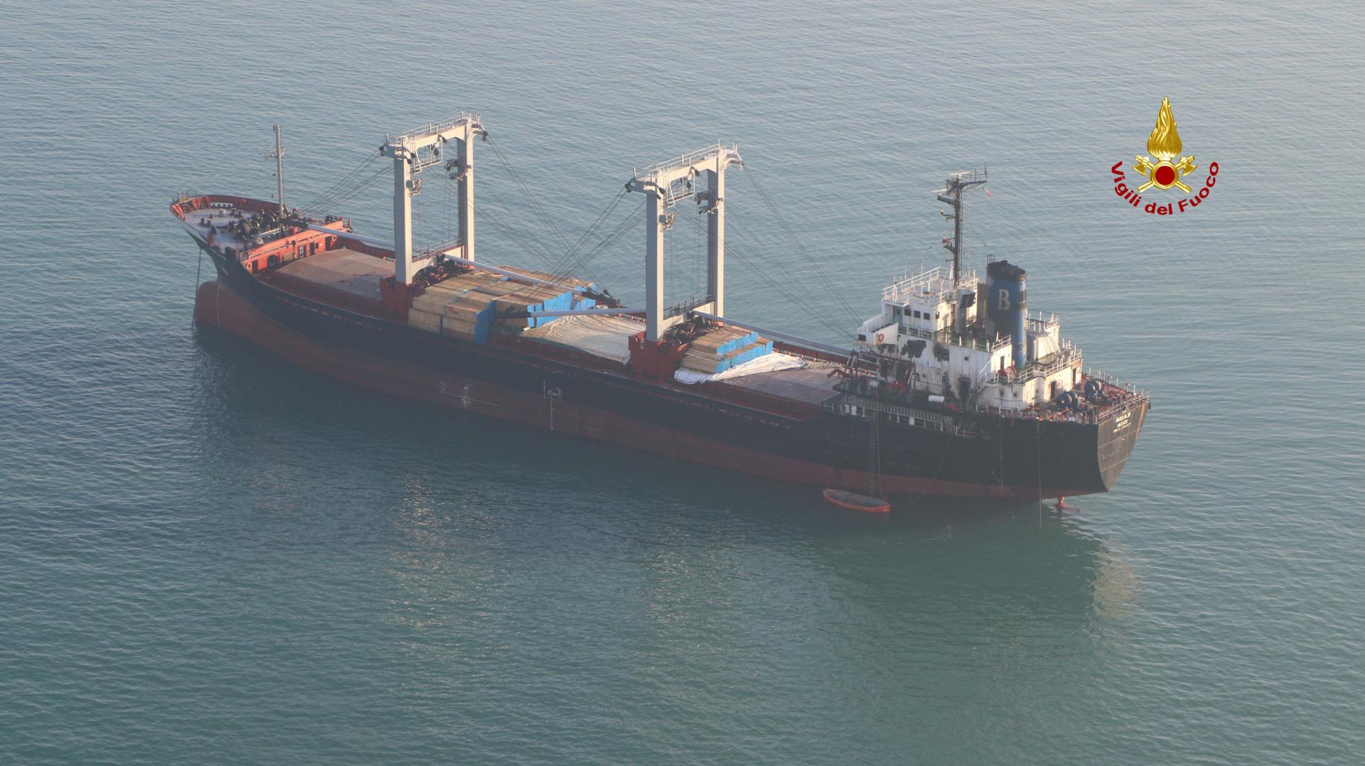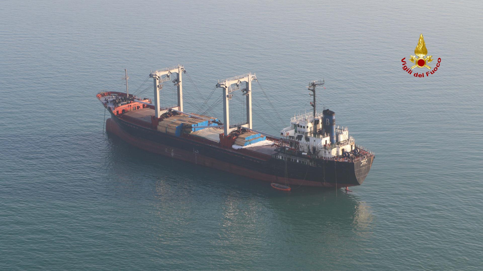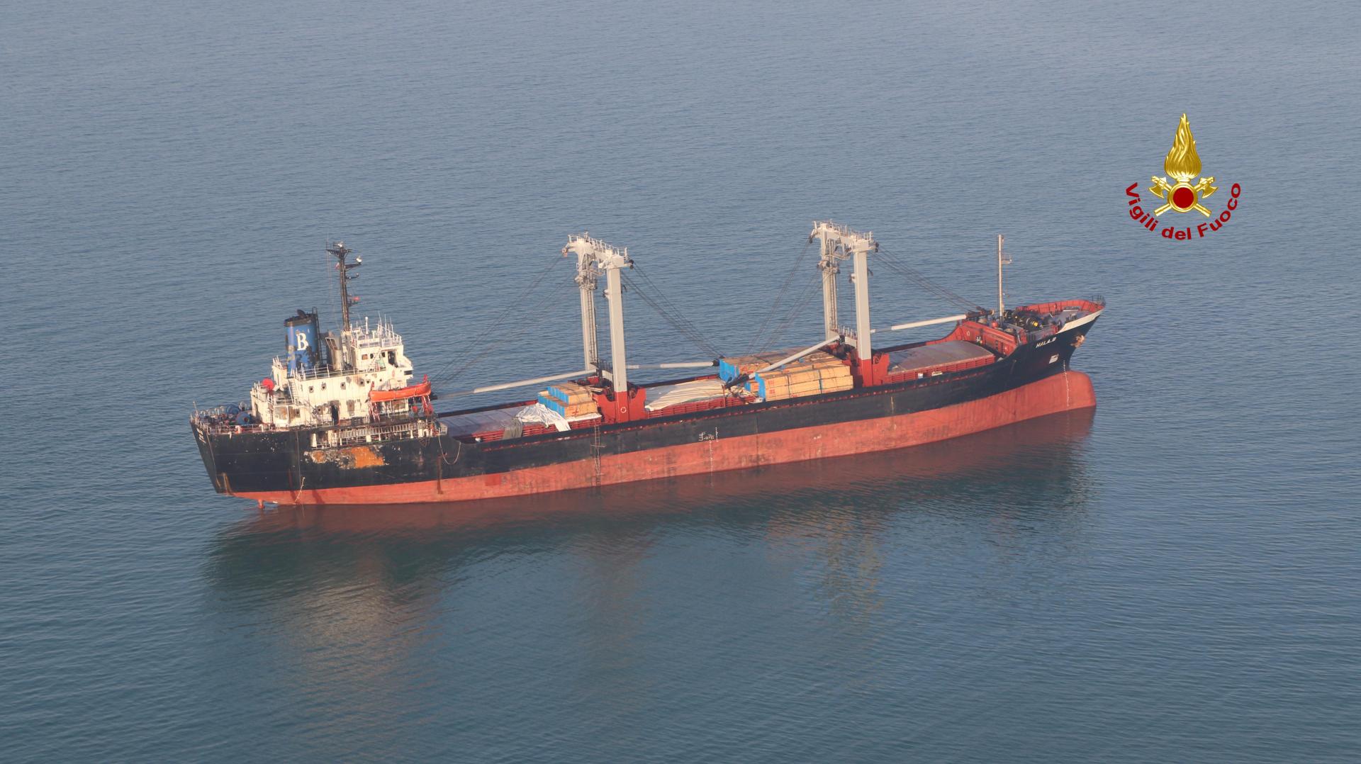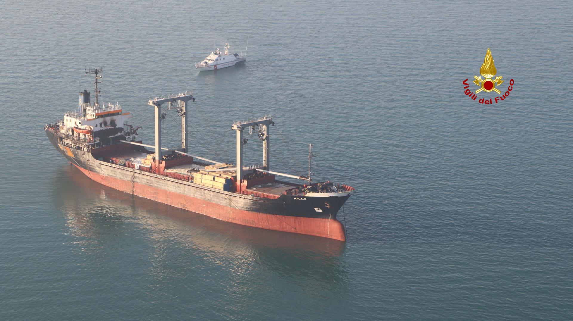 Terminate le operazioni di spegnimento dell’incendio sulla nave “HALA B”, mercantile Bulk Carrier di 115 mt battente bandiere Belize con un carico di legname.