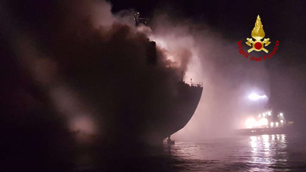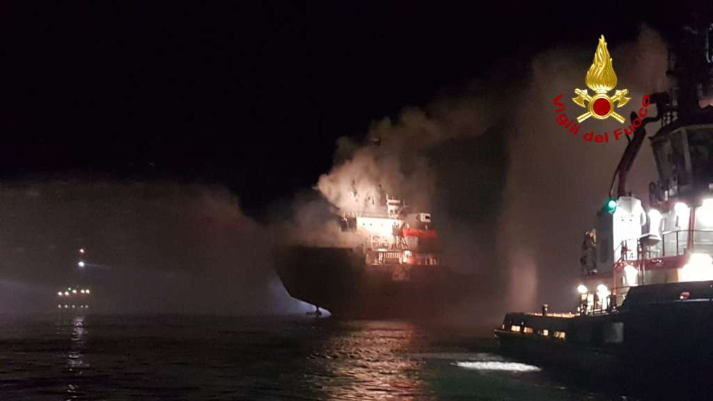 Nella serata odierna la Guardia Costiera di Chioggia ha tratto in salvo le 18 persone di equipaggio che si trovavano a bordo del mercantile HALA B, nave Bulk Carrier di 115 mt battente bandiere Belize. Il mercantile si trovava alla fonda in rada a Chioggia quando si è verificato un principio di incendio in sala macchine. Tutti i membri dell’equipaggio tratti in salvo sono in buono stato di salute. Sul luogo sono intervenute , sotto il coordinamento della Guardia Costiera che sta dirigendo le operazioni , motovedette di Chioggia, un mezzo dei VV.F e 6 rimorchiatori tutt’ora impegnati nel tentativo di estinguere l’incendio .