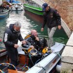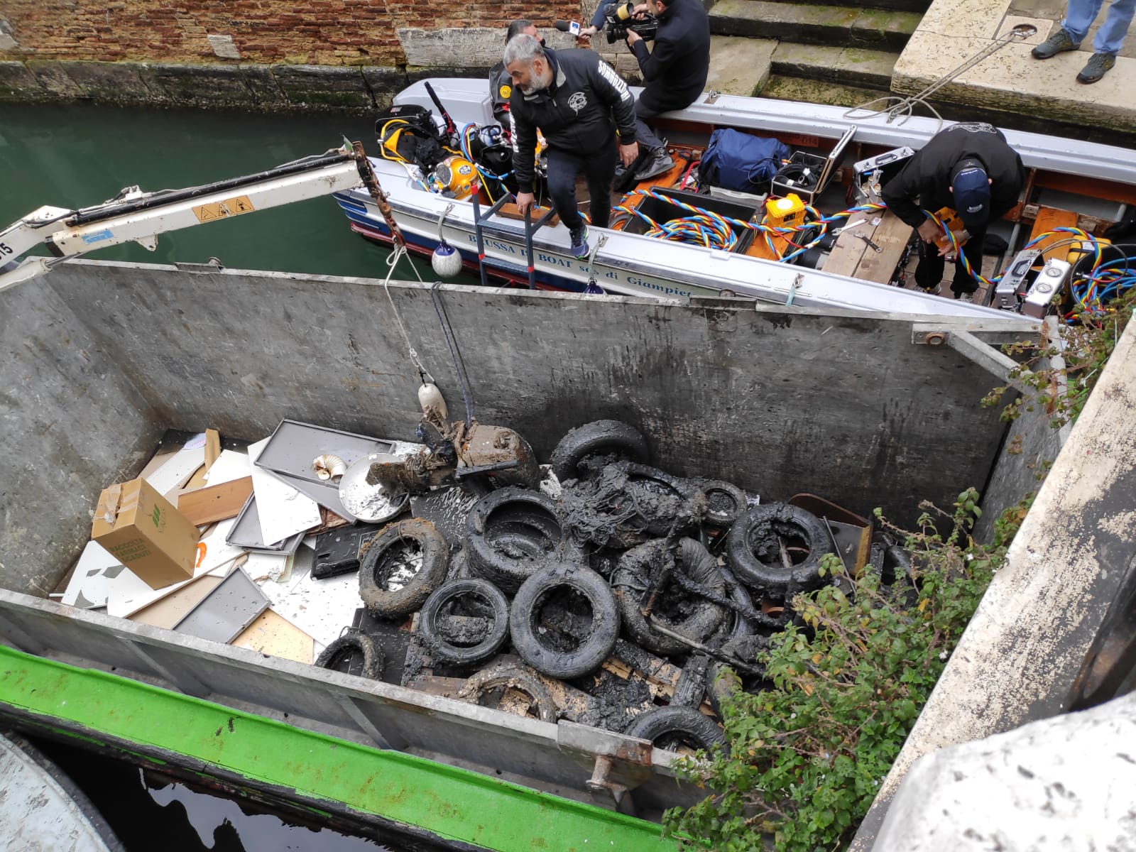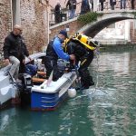 Sul posto era presente anche il consigliere delegato alla Tutela delle tradizioni Giovanni Giusto: “La sperimentazione che il Comune di Venezia sta coordinando continua con successo – ha commentato – anche oggi è stata un’operazione proficua. E’ un po’ come andare a funghi, in questi casi non si torna mai a casa col cesto vuoto. Oggi, però, la ‘pesca’ è stata sorprendente, perché è stato recuperato anche un motore da 25 cavalli. Bisogna entrare nell’ordine delle idee che non serve a nulla pensare che ciò che non si vede sott’acqua non esista, anzi. L’Amministrazione Brugnaro in questo senso è attivissima ed è pronta ad ascoltare e appoggiare le numerose ulteriori associazioni che già ci stanno contattando per organizzare altre iniziative simili. Come Comune promuoviamo una tutela ambientale che coinvolga direttamente i cittadini, a cominciare dalla raccolta dei rifiuti, di cui siamo leader in Italia. Voglio ricordare anche, con un certo orgoglio, che con questa Amministrazione siamo tornati a scavare in umido i rii di Venezia, investendo oltre 4,5 milioni di euro. Devo ringraziare – ha concluso Giusto – il servizio di noleggio imbarcazioni Brussa, che ha fornito un mezzo nautico per i sommozzatori, la società di equipaggiamento subacqueo Aquatica di Marghera, che ha messo a disposizione tute e strumentazioni, compresi dei caschi speciali che permettono di comunicare con chi è in superficie senza bagnarsi e Veritas”.