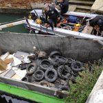 I risultati della loro seconda uscita stagionale si sono rivelati non molto diversi rispetto a quella del 10 febbraio scorso: sono stati recuperati e caricati su un’imbarcazione Veritas per il trasporto di rifiuti ingombranti copertoni usati come parabordi, cavalletti delle passerelle per l’acqua alta, tubi di cemento e scarti di ogni genere, per un totale di circa 600 chili di rifiuti, compreso un motore marino da 25 cavalli che ha richiesto un certo impegno per essere riportato all’asciutto.