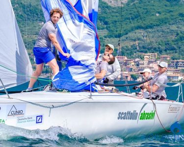 Due giorni di gare nel basso lago di Garda con la 54° edizione del Trofeo Tridentina e il 47° Trofeo Flavio Visconti, regate organizzate da Fraglia Vela Desenzano con la locale sezione della Lega Navale Italiana. Una prova costiera, più tre gare tra le boe, era il programma del week end. Buona, come sempre, la partecipazione nella Classe Dolphin, che nell’occasione ha presentato il nuovo partner della flotta, la Deutsche Banck. Al primo posto si piazza “Baraimbo” di Imperadori-Razzi, portato come sempre da Giò Pizzatti (FV Desenzano), seguono “30 Nodi” condotto da Samuel Naldi e “Twister-Sterilgarda” di Flavio Bocchio con Mattia Polettini al timone. Al 4° posto si classifica “Flipper” con Umberto Grumelli, vincitore della regata costiera, al 5° posto “Zerouno” di Stefano Gidoni (Canottieri Garda) che vince il premio per i timonieri-armatori.