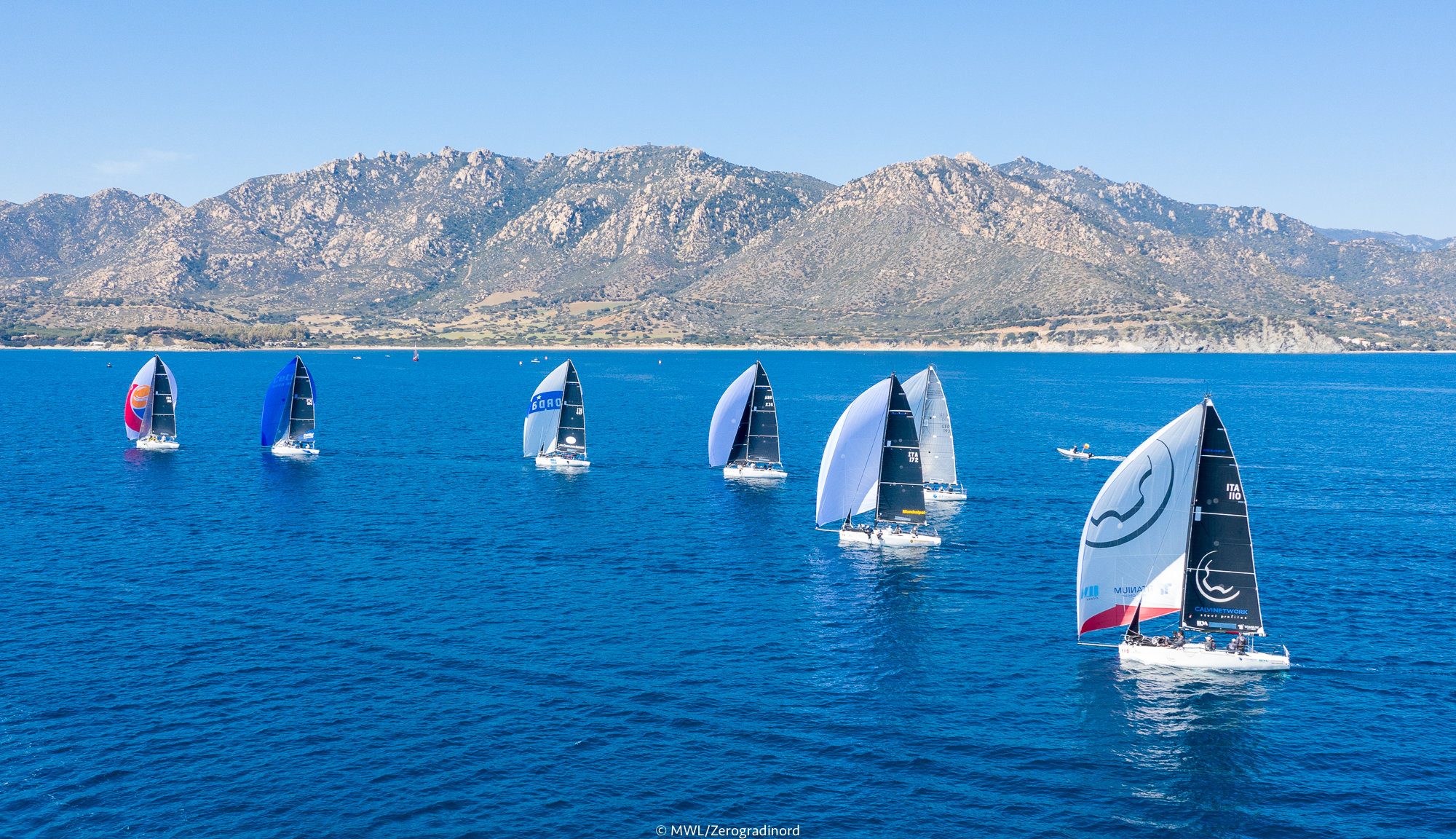 Vento leggero e temperature primaverili accompagnano la flotta Melges 32 nella seconda di giornata di regate della Melges World League, circuito organizzato da Melges Europe e che, per la sua prima frazione, gode dell’ospitalità del Marina di Villasimius.