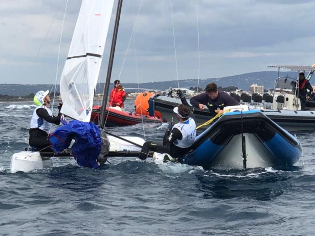 Nei 470 femminili termina con le due prove di oggi una settimana cominciata molto bene da parte di Elena Berta con Bianca Caruso (CS Aeronautica Militare/Marina Militare) ma che si chiude con un 19esimo posto generale; davanti a loro di un solo punto Benedetta Di Salle e Alessandra Dubbini (Marina Militare/SV Guardia di Finanza), costrette a ritirarsi dalla prima prova odierna.