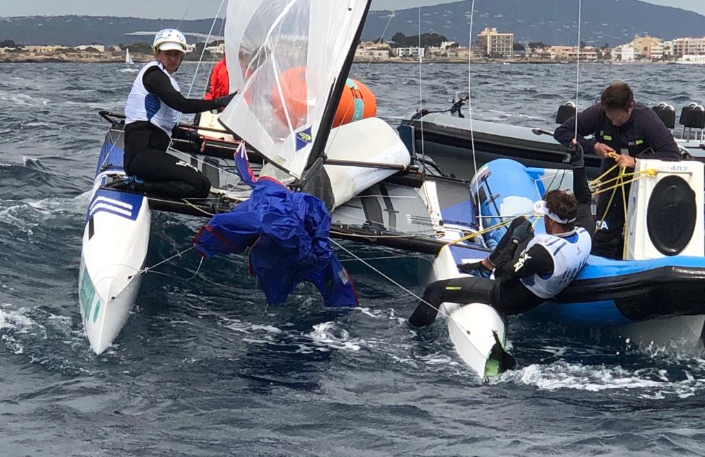 “La dinamica dell’incidente era potenzialmente pericolosissima – dichiara il Direttore Tecnico Michele Marchesini – Tita/Banti scendevano di poppa in foiling dopo un jibe-set a oltre 23 nodi mure a sinistra e non hanno visto l’equipaggio tedesco che stava salendo di bolina. Lo scontro è stato violento, ma fortunatamente i danni maggiori sono stati subiti dalle imbarcazioni. Il catamarano di Tita/Banti non potrà regatare domani, ma stiamo lavorando per mettere a punto una barca sostitutiva per poter affrontare al meglio la Medal Race.”
