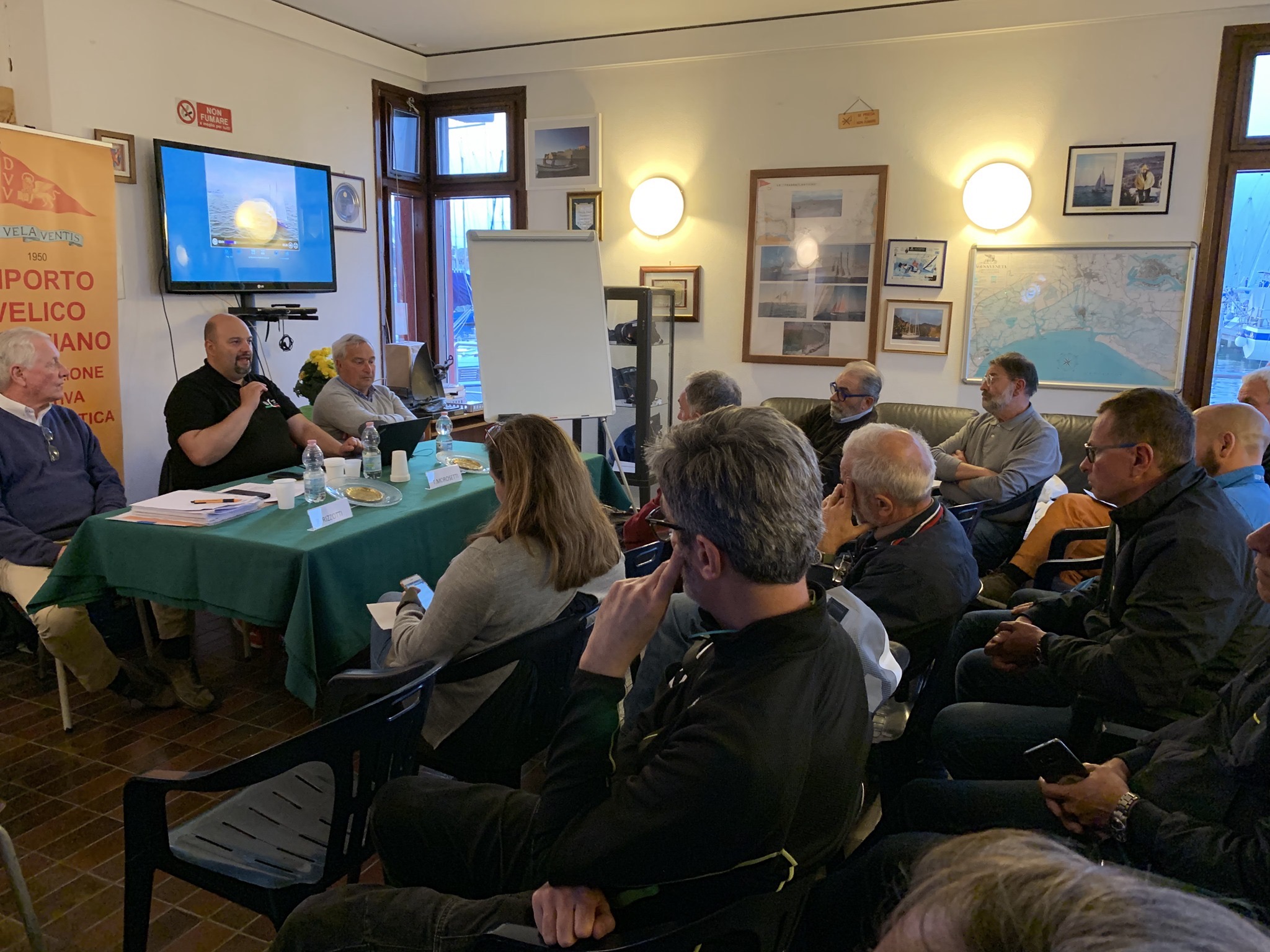 Ieri al Diporto Veloco Veneziano si è parlato delle Regate con Rating FIV, grazie ai relatori Franco Pappagallo (Presidente XII Zona FIV), Tito Morosetti (Ufficiale di Regata Internazionale World Sailing IJ), Anna Cuccia (Responsabile dei giudici XII Zona FIV) coordinati da Pier Bruno Rizzotti (già IJ Internazionale).